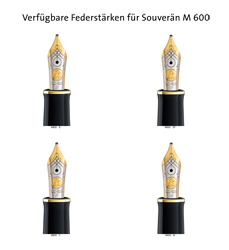 Souverän ist der Klassiker von Pelikan. Die Produktion des Souverän Mantels unterliegt einem aufwendigen Prozess, denn nach einer eigens für Pelikan entwickelten Rezeptur wird aus Baumwoll-Material in vielen Schritten ein gestreiftes Materialstück gefertigt, welches gebogen und anschließend mit einem Diamanten auf Kontur geschliffen wird. Die vergoldeten Ringe an Füllgriff und Kappe werden mit höchster Präzision eingepasst, bevor das Schreibgerät auf Hochglanz poliert wird. Der leicht federnde, typische Pelikan Schnabelclip verleiht diesem hochwertigen Schreibgerät sein unverwechselbares Design. Der Kolbenfüllhalter Souverän M600 verfügt über eine 14-Karat Bicolor-Goldfeder und ist in den Federbreiten EF, F, M und B erhältlich. Die F-Feder sorgt für ein feines Schriftbild und ist besonders für Handschriften mit kleineren Schwüngen geeignet.