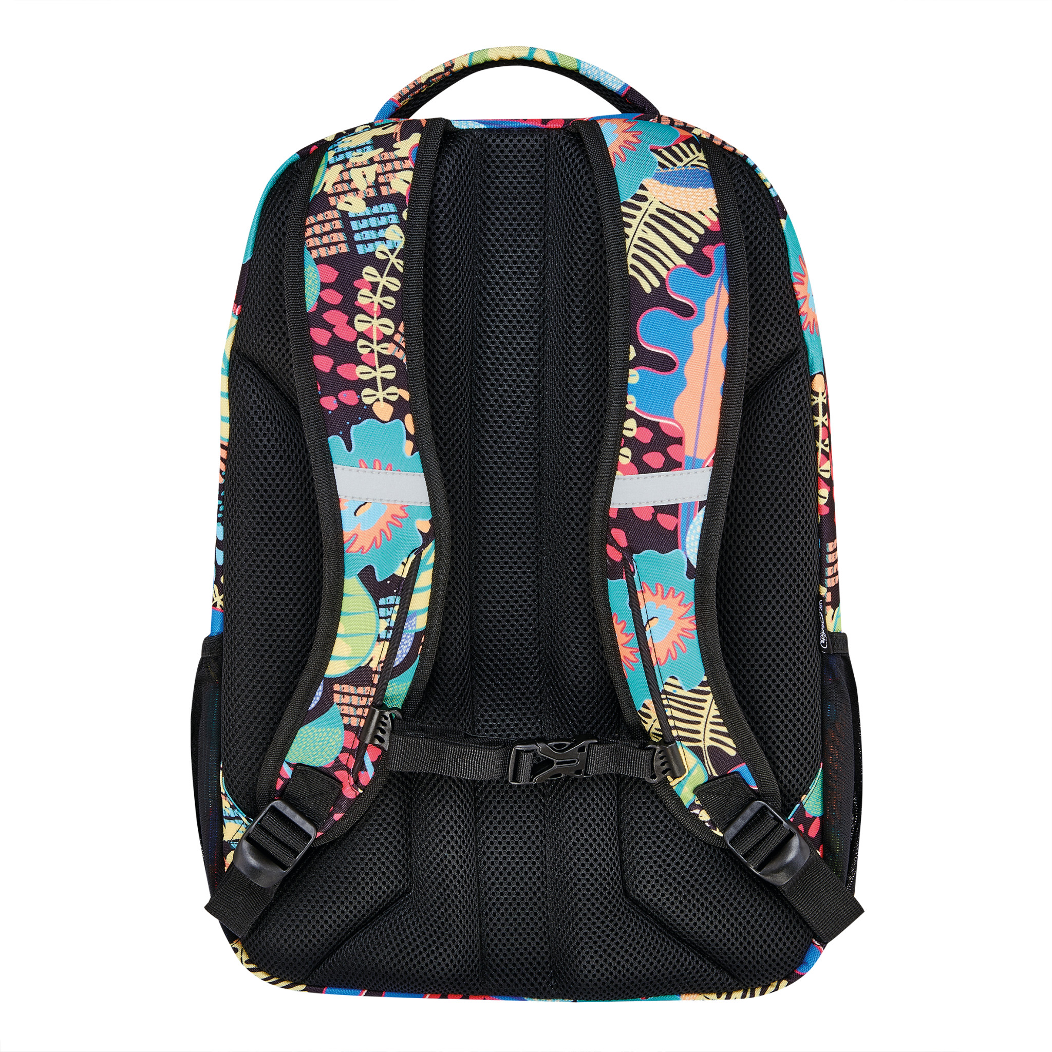 | "backpack be.freestyle jungle be.freestyle and express yourself! No limits on creativity, imagination and style. Keep an open mind and express your inner personality from the inside-out. material: polyester 600D measurements: 32x20x45cm (LxWxH) volume: 27 litre BRANDING be.bag logo patch be.bag zipper puller be.bag embossed inner lining FEATURES: Two big compartments including organizer pocket with name tag and key holder Front zipper pocket Hidden pocket for laptop, tablet, documents etc. Elastic side pockets for water bottle etc Two-way zipper on all pockets Padded handle Padded bottom panel for stable stand Water-repellent material Bike light attachment loop with reflective material Padded ergonomic shaped back straps Refl ective stripes Adjustable chest strap Well padded ergonomic air mesh"  |