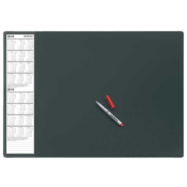 | Description: | Schreibunterlage schwarz Kunsstoff 63 x 50 mit Kalender, Anwendungsabbildundung: geöffenter Stift auf der Unterlage, Art. Nr. 5551007 |