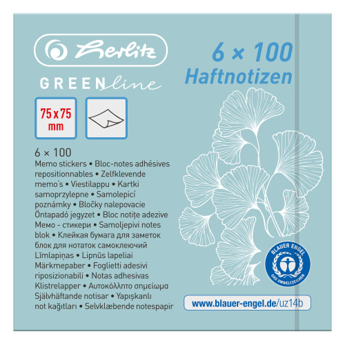 File name | 50033430_Haftnotizblock 75 x 75 mm 6x100 Blatt GREENline 3 Farben, eingeschweißt Draufsicht.psd |