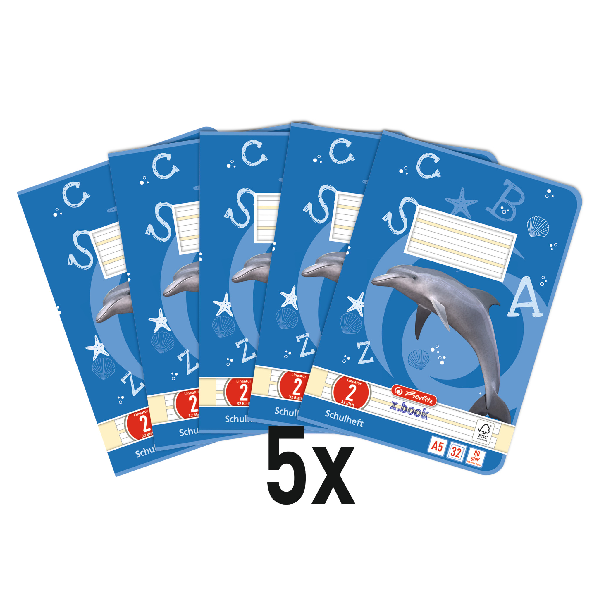 Exercise book A5 x.book 32 sheets ruling 2 motif dolphin 5 pieces fan, with number |