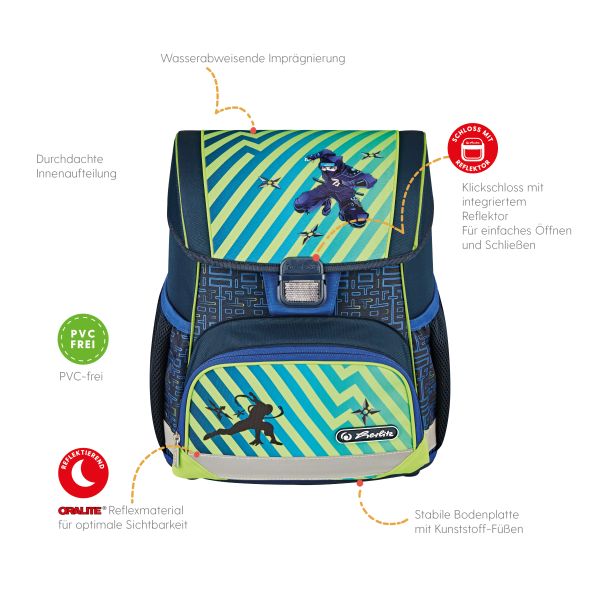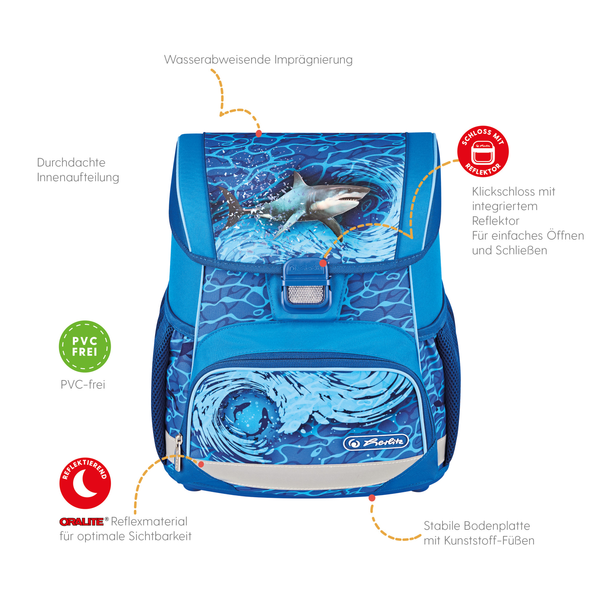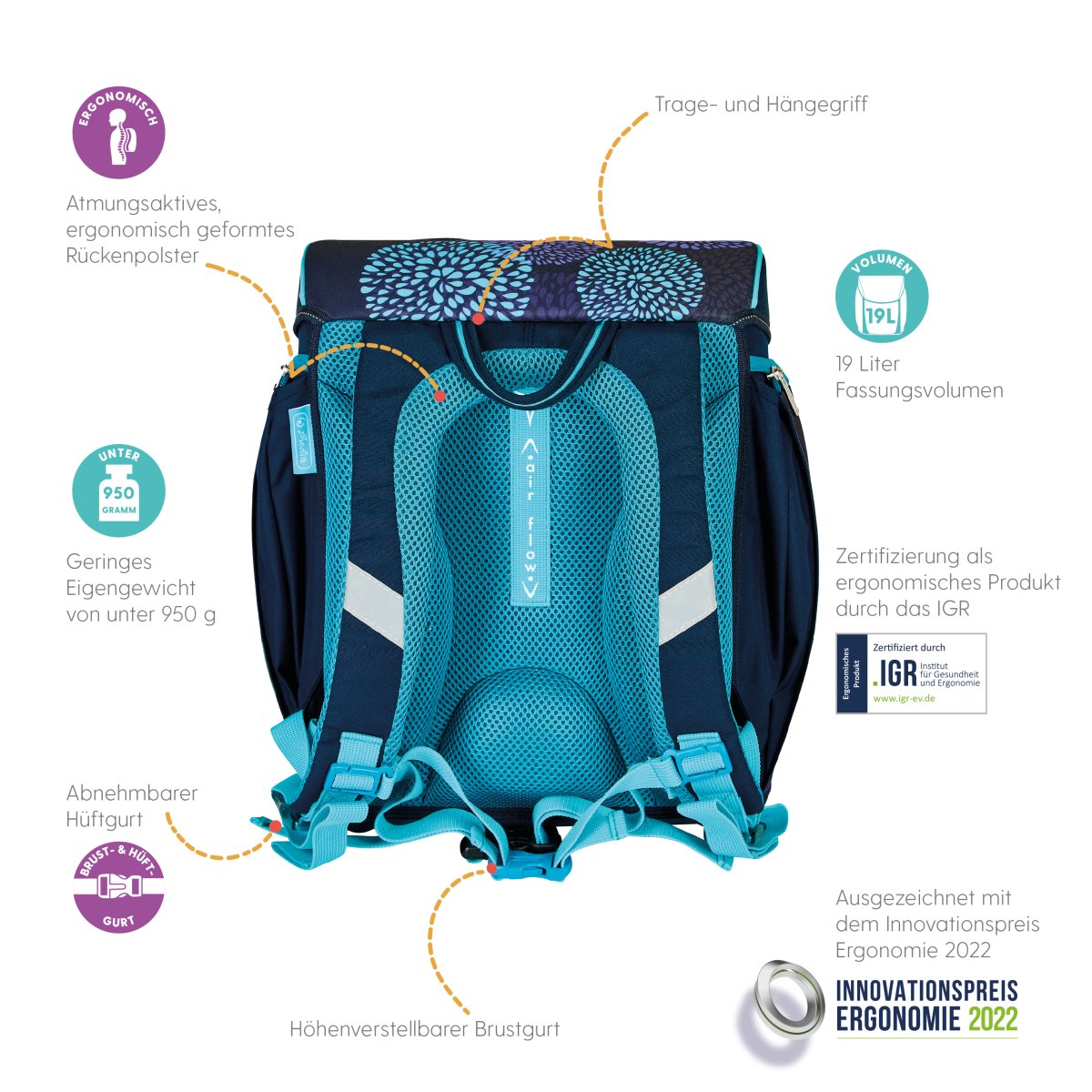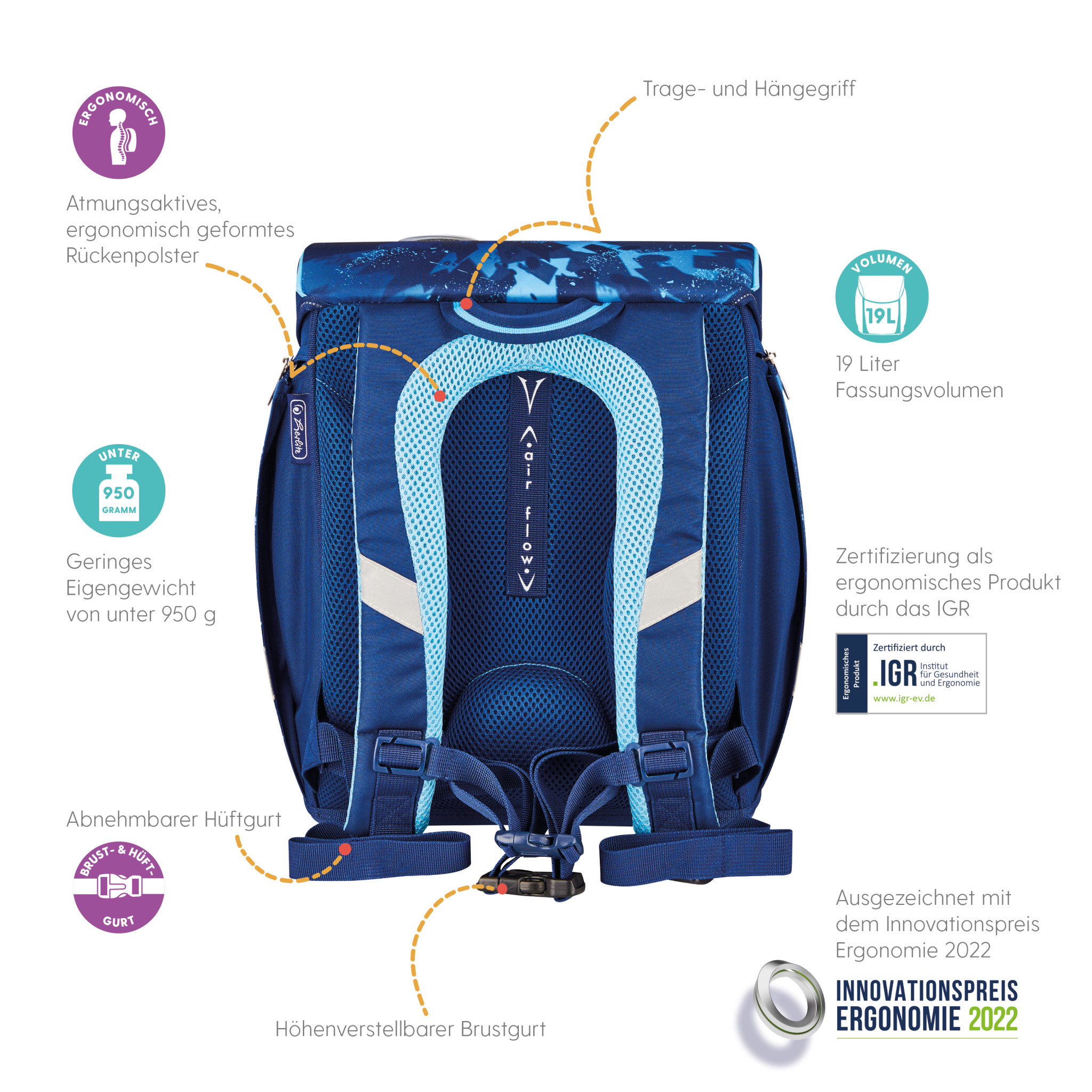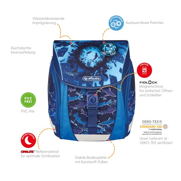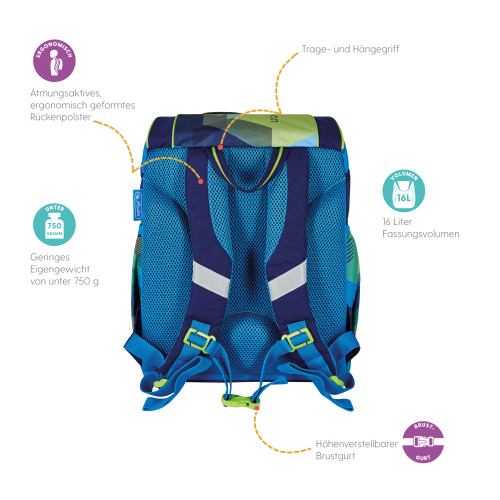 Schoolbag FiloLight Deep Sea front, with Key Facts DE |