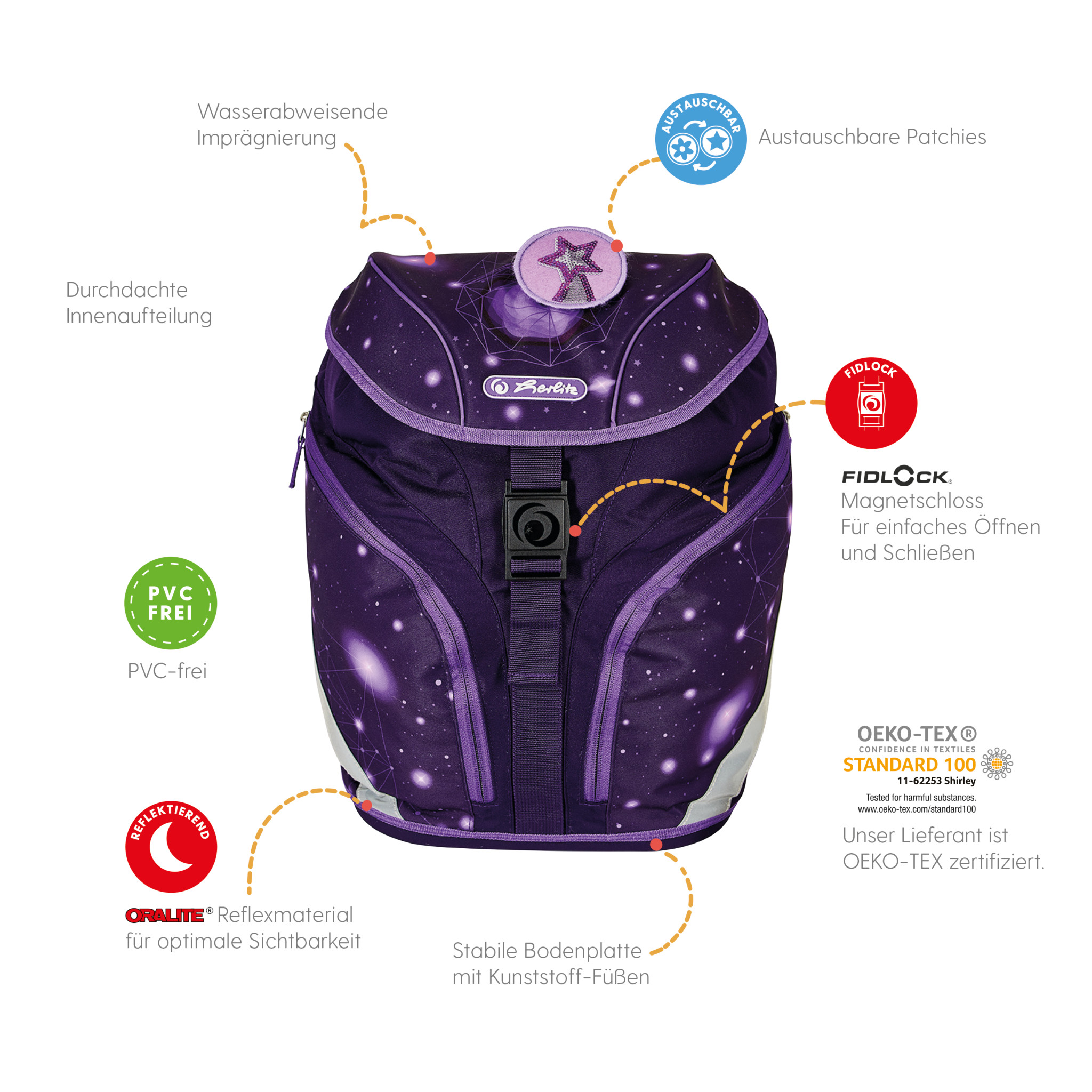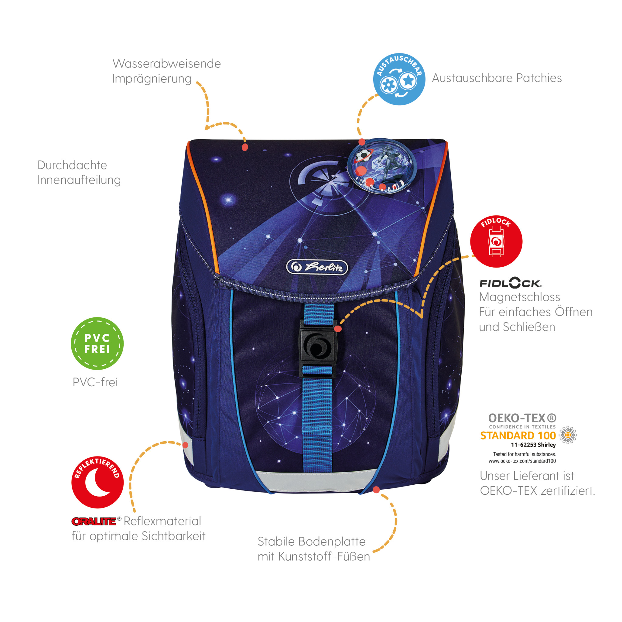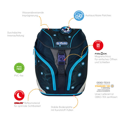 Schoolbag FiloLight Galaxy Game front, with Key Facts DE |