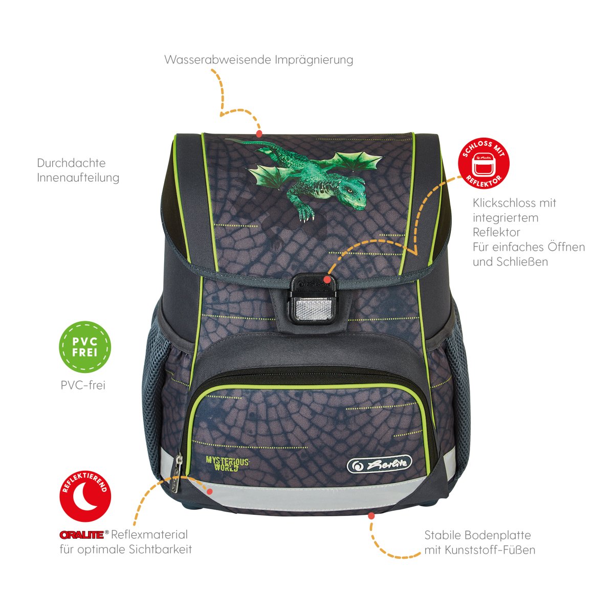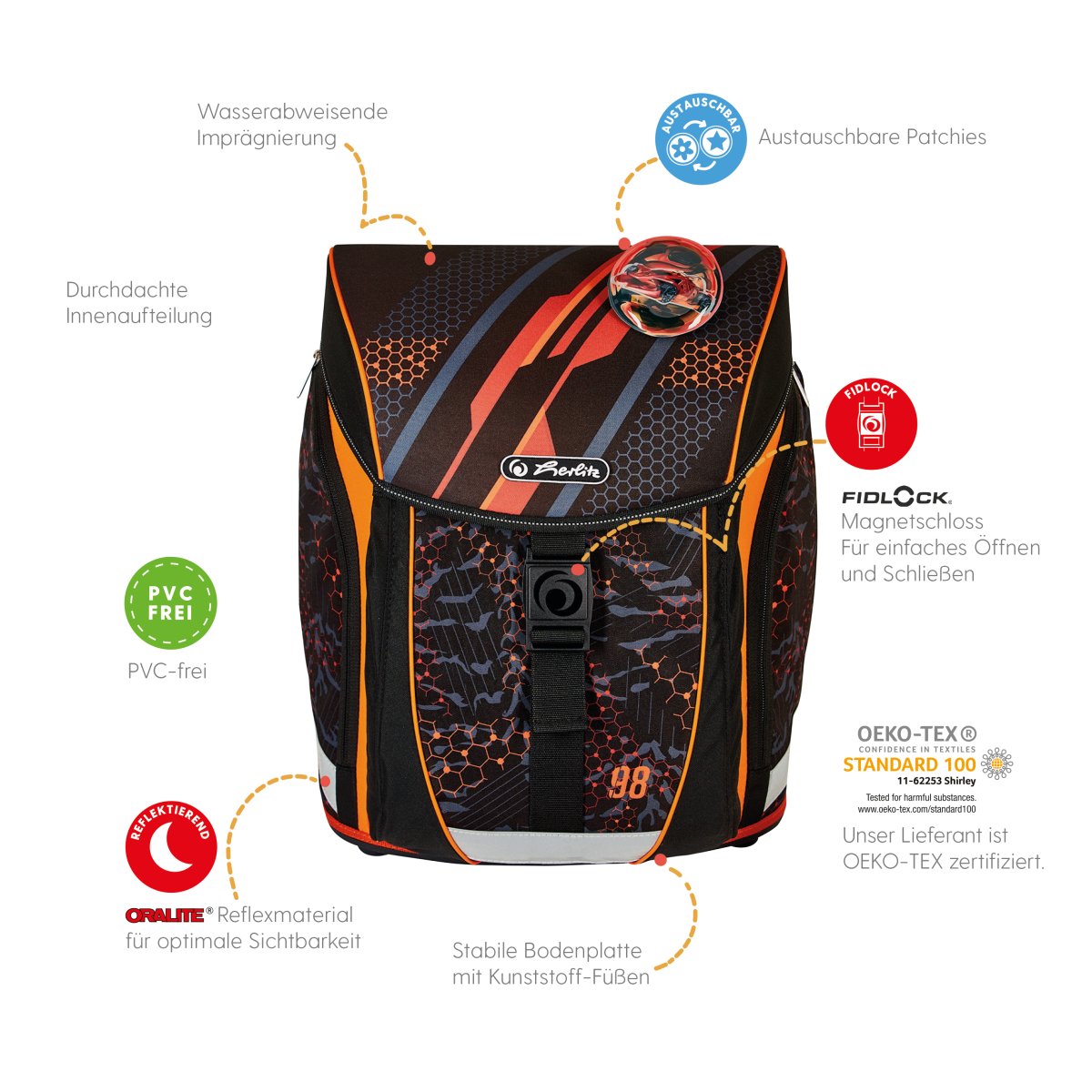 Schoolbag FiloLight Heavy Metal front, with Key Facts DE |