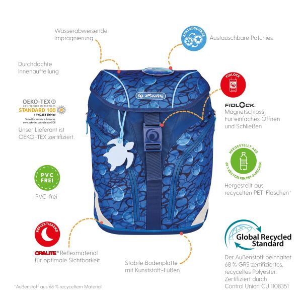 Schoolbag FiloLight Sea Bubbles front, with Key Facts DE |