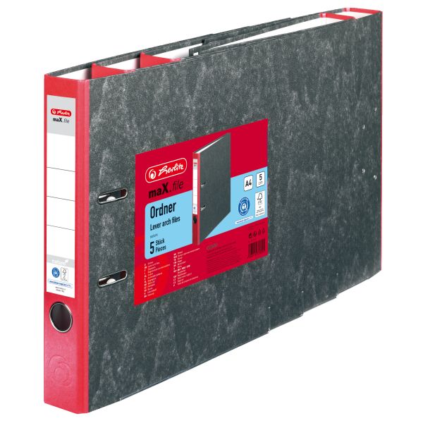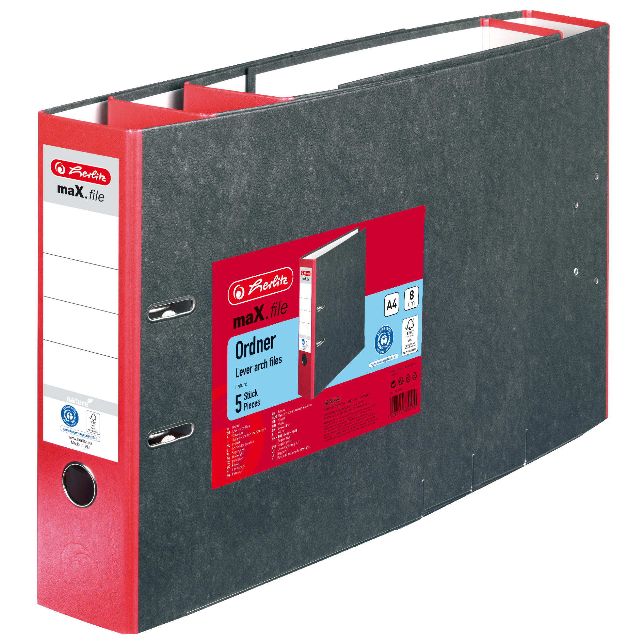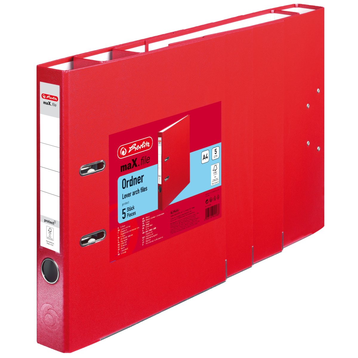 Lever arch file maX.file protect A4 8cm red, 5 pieces |