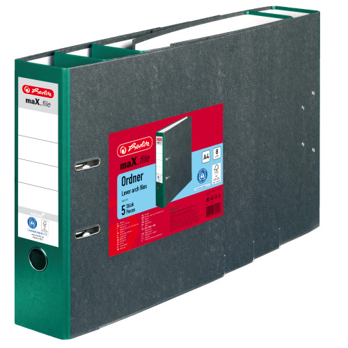 Lever arch file maX.file protect A4 8cm green, 5 pieces |