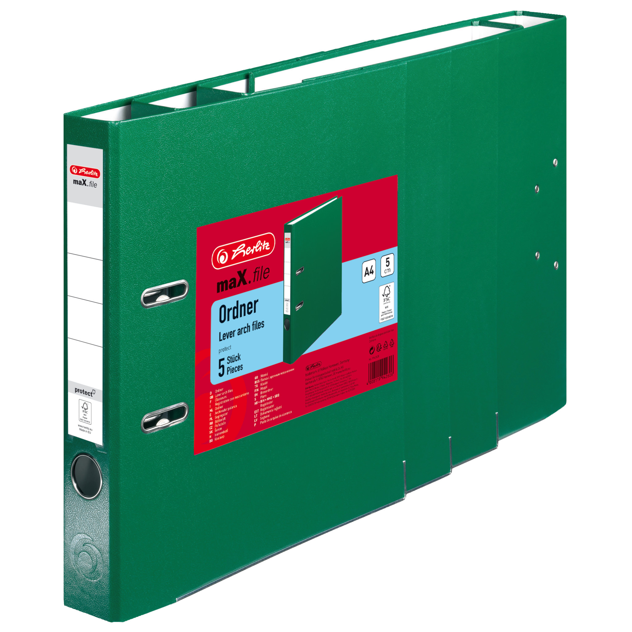 Lever arch file maX.file protect A4 5cm green, 5 pieces |