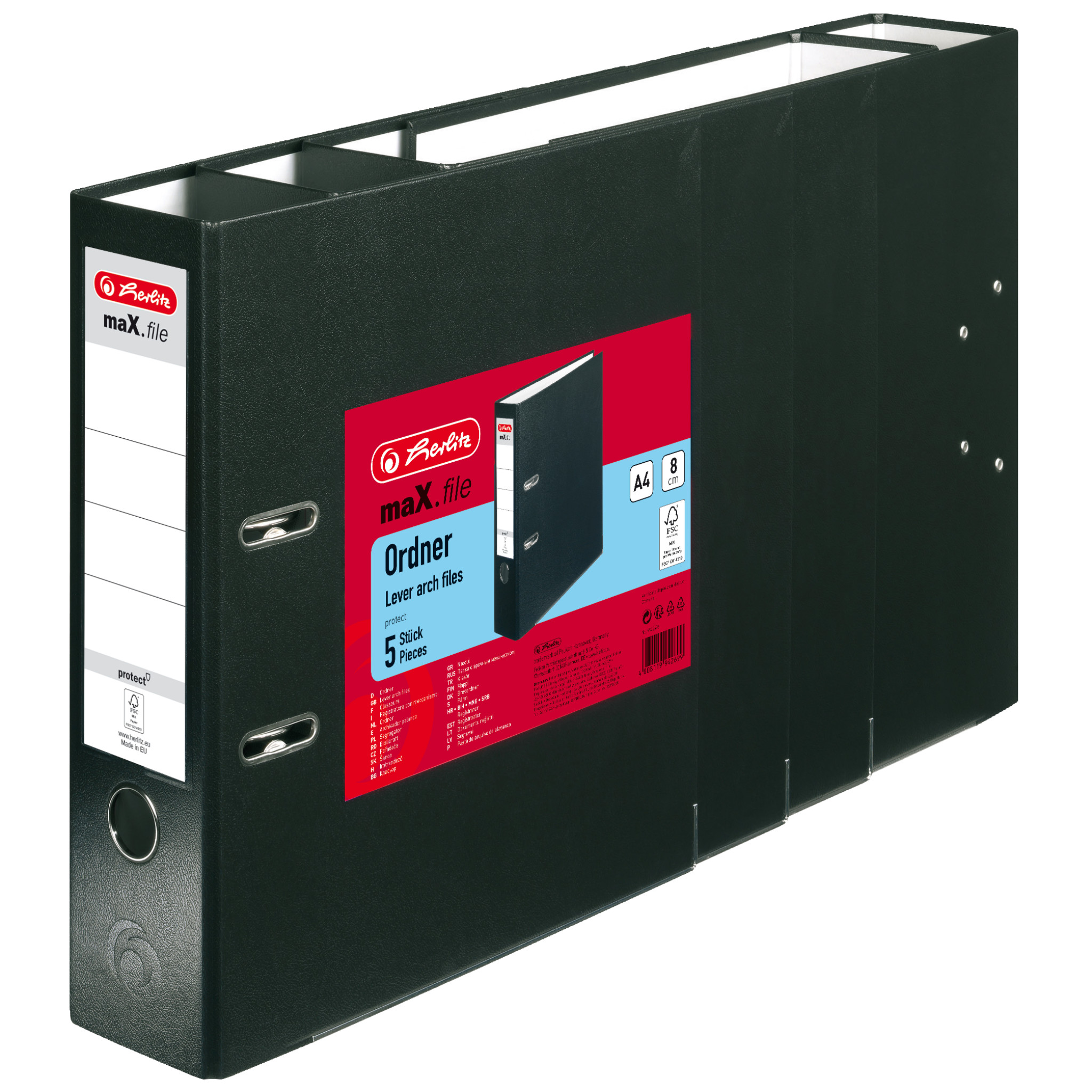 Lever arch file maX.file protect A4 8cm black, 5 pieces |