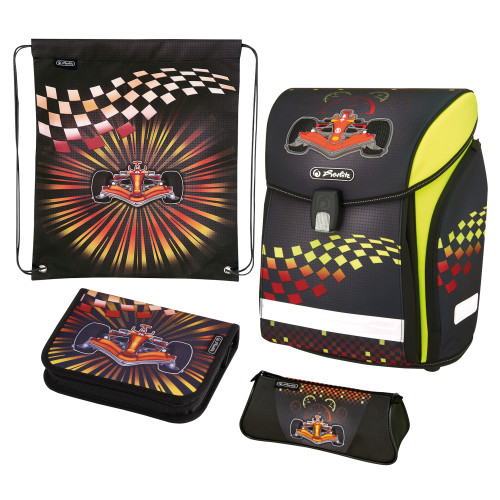 Schüleretui Happy School, pink offen, Inhalt sichtbar |