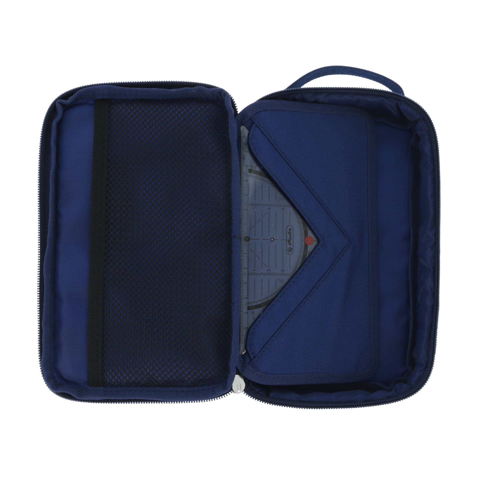 Pencil pouch 2 Go CamoBlue,open flap with net pocket and geometry pocket incl. geometric triangle |