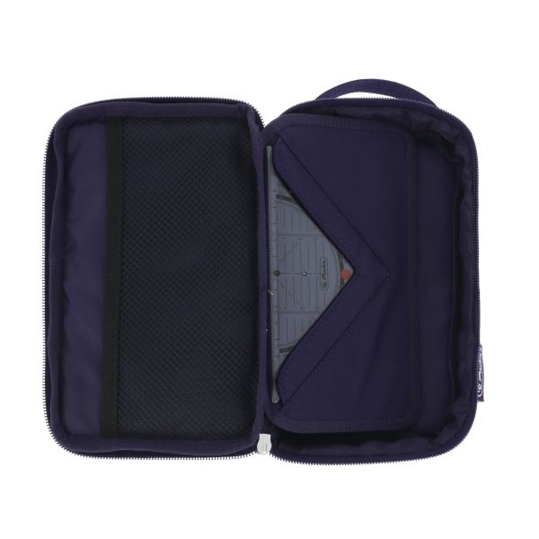 Pencil pouch 2 Go CamoPurple, open flap with net pocket and geometry pocket incl. geometric triangle |