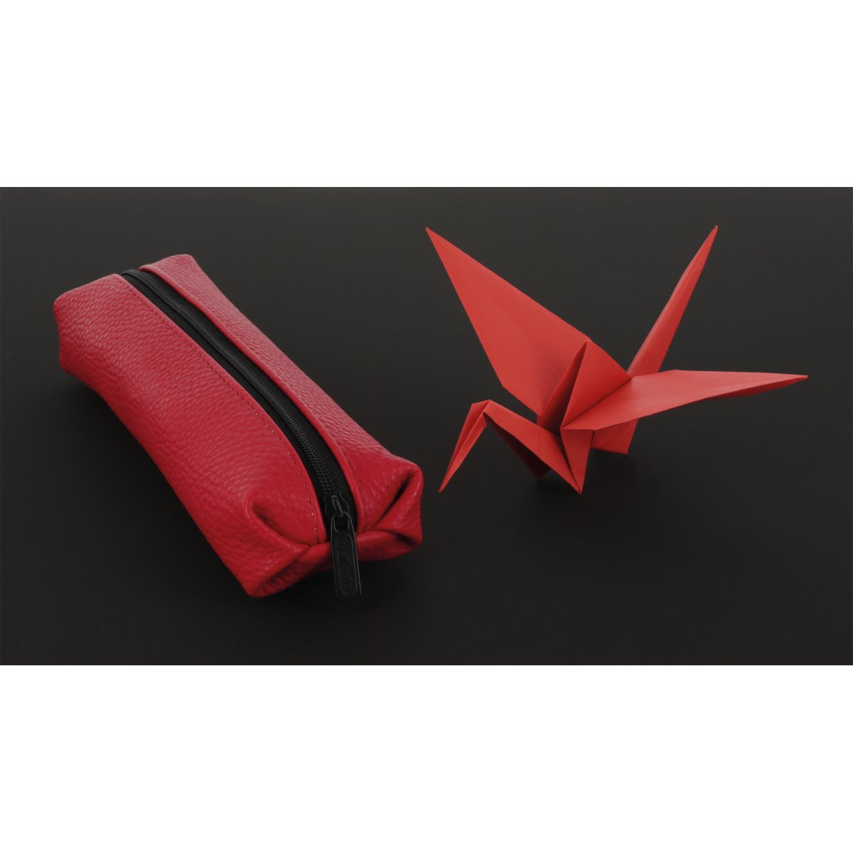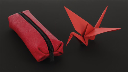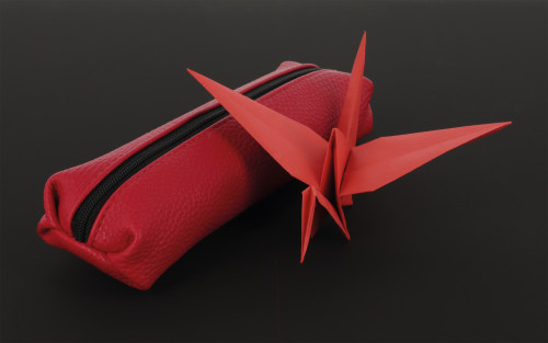Pencil pouch Origami Flame red, open with content |