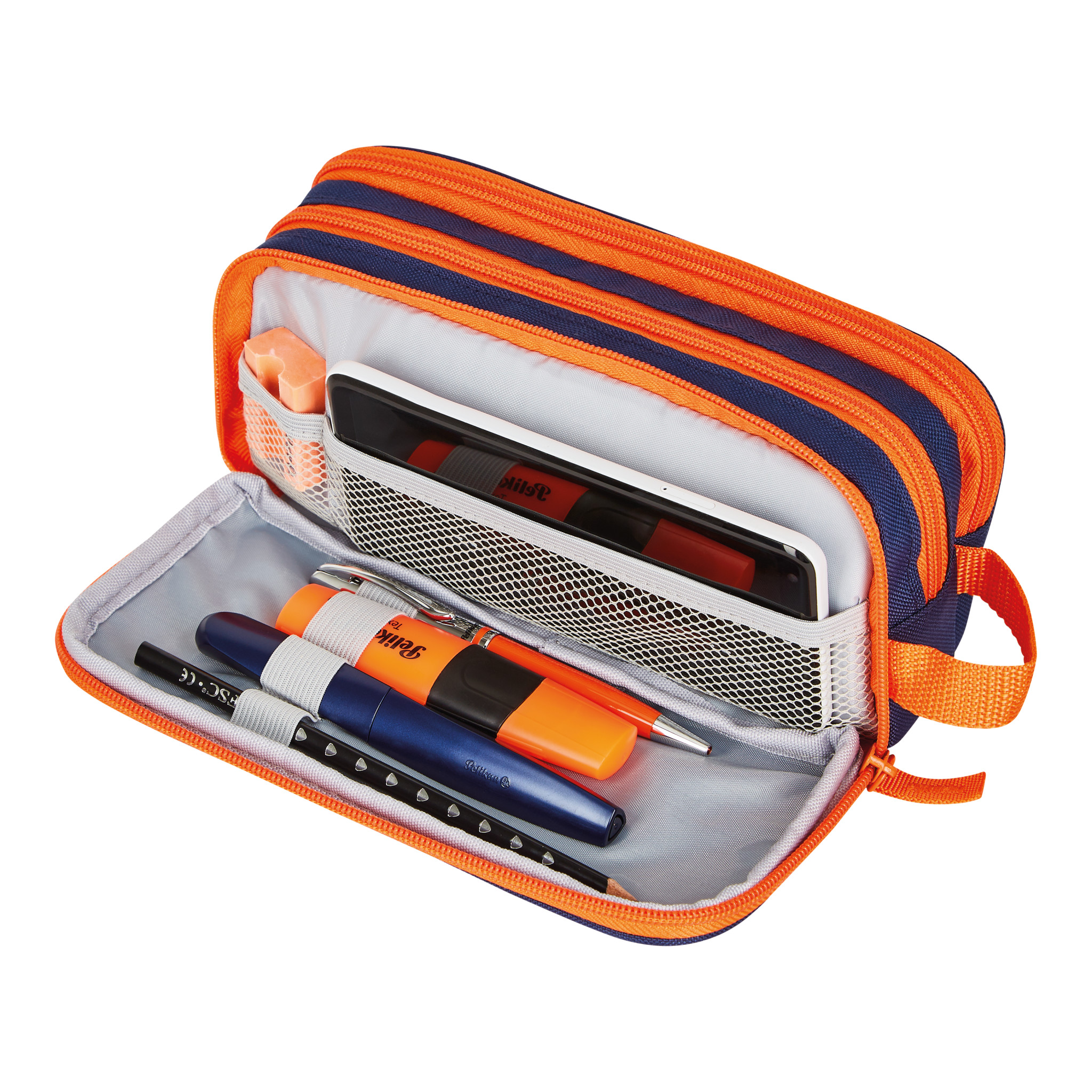 Pencil pouch Origami Spicy orange, open with content |