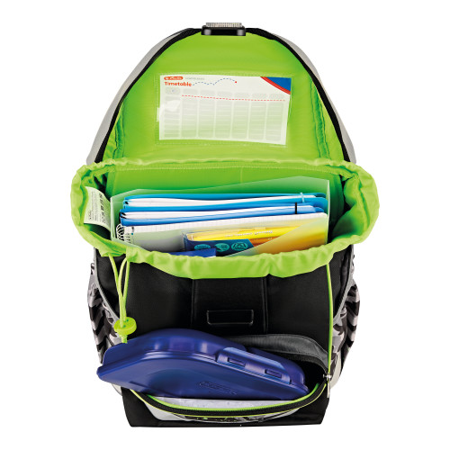 Schoolbag UltraLight Green Rex, open with content |