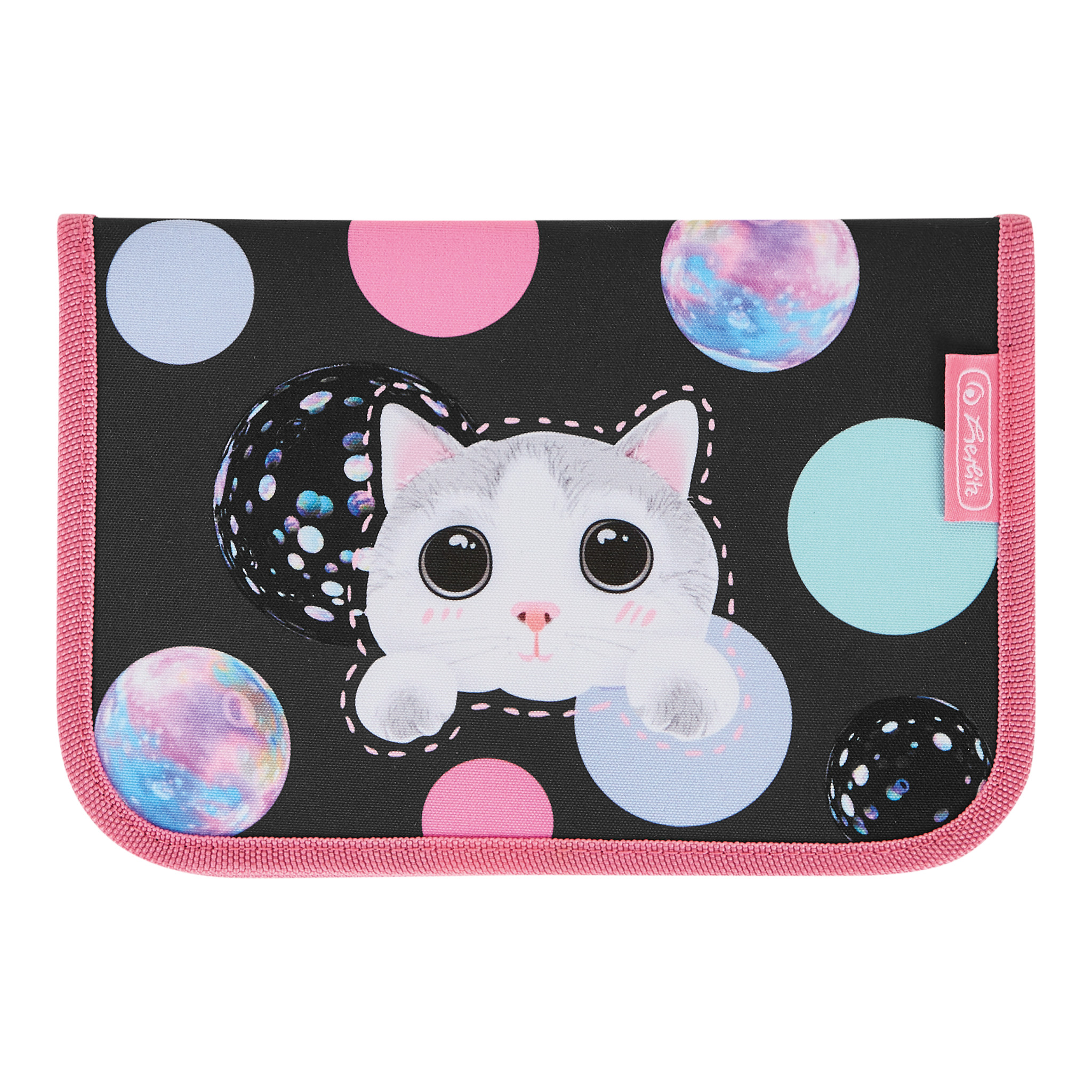 Pencil case Cute Cat 2 flaps, total open |