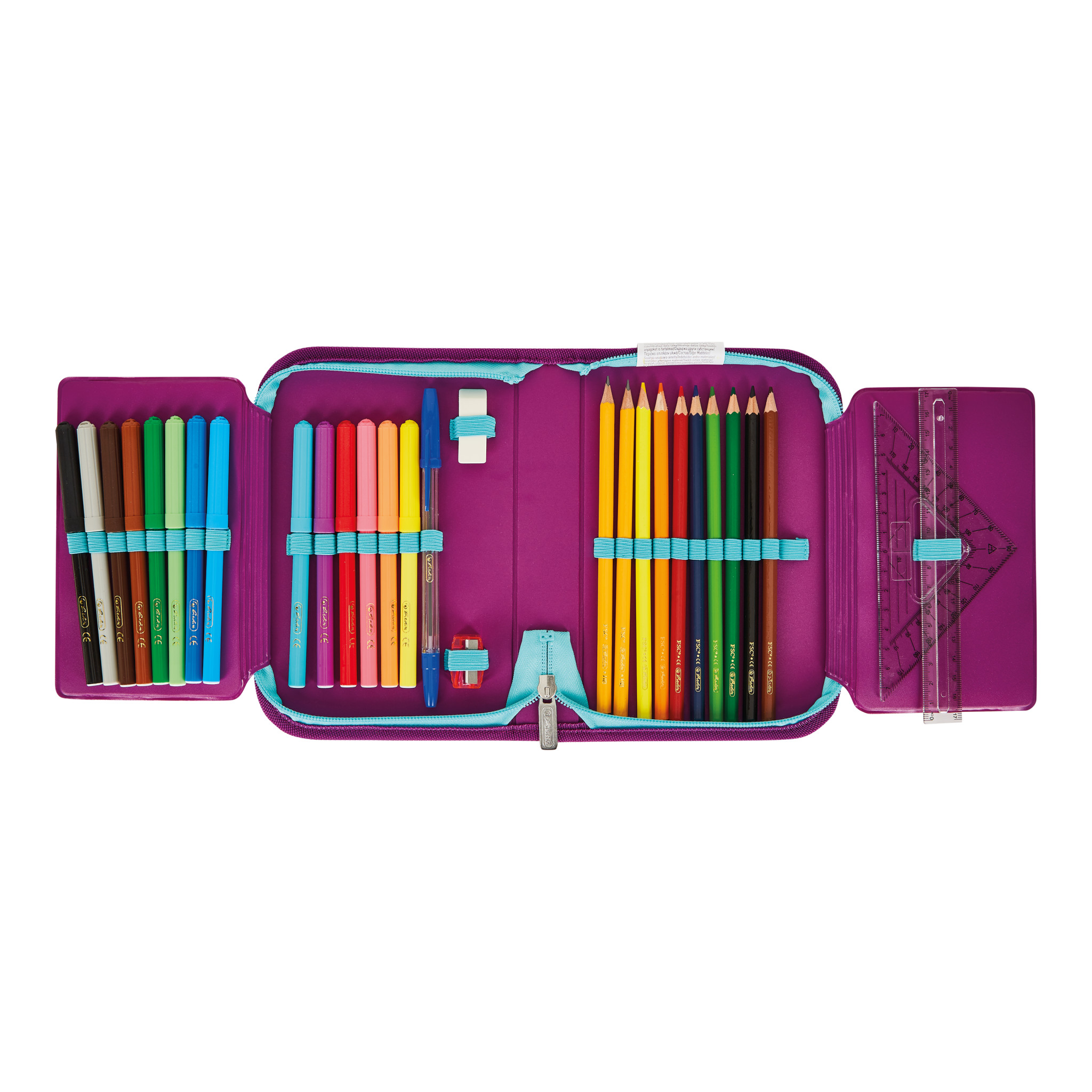 Pencil case 16 pcs. Tropical Chill, open |
