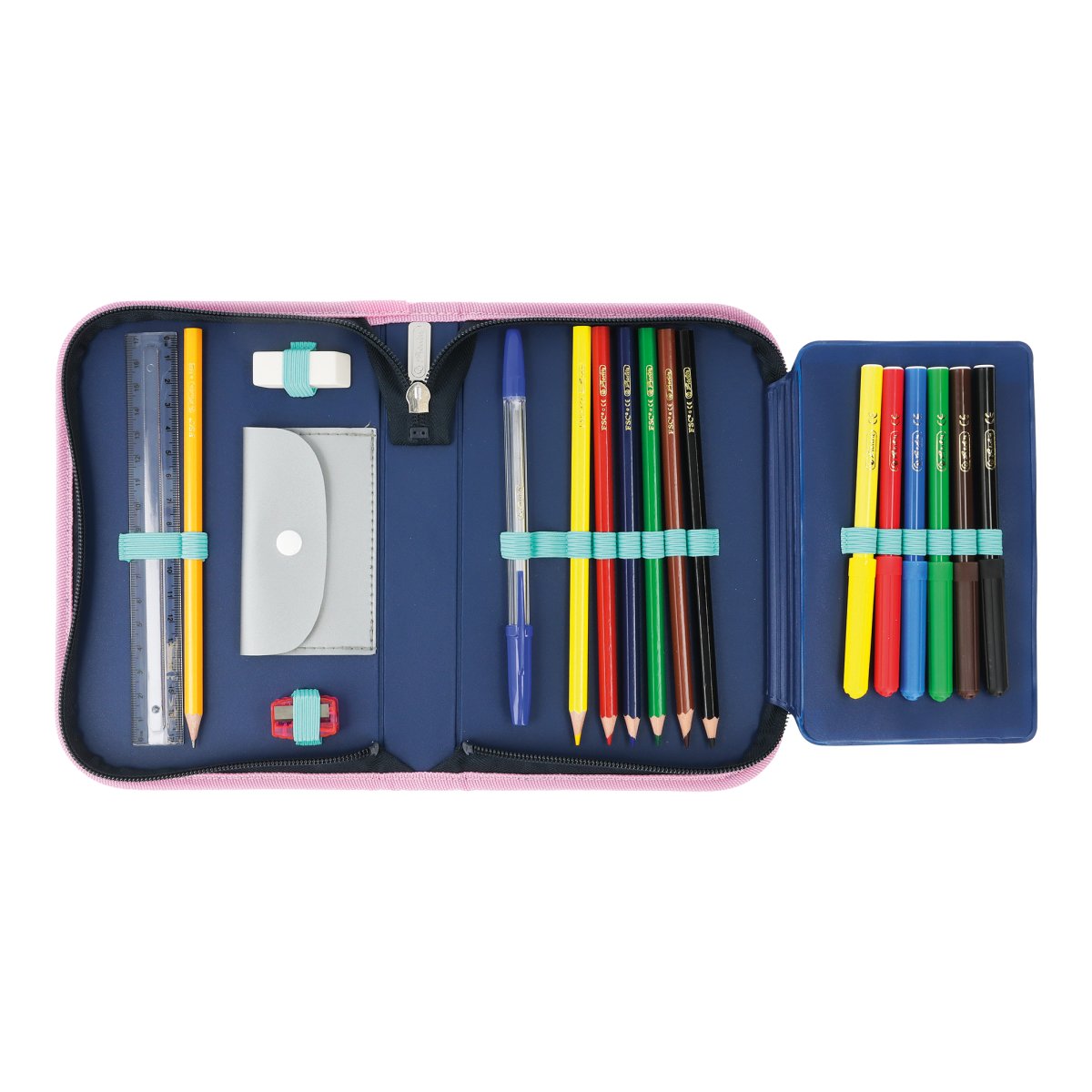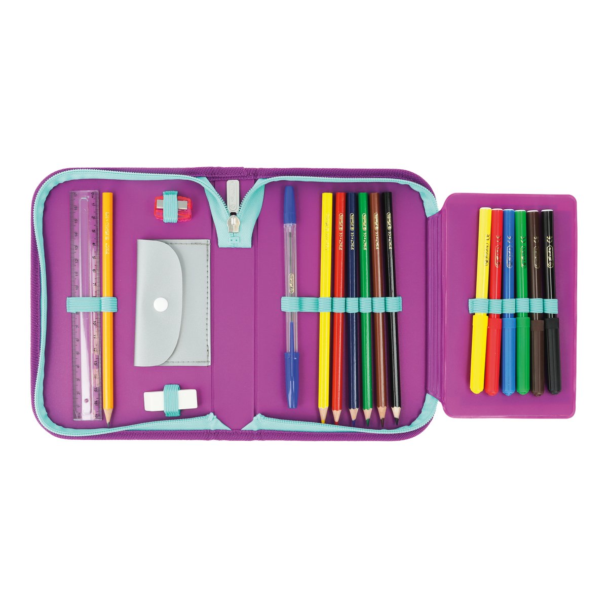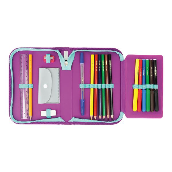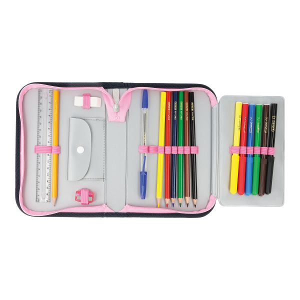 Pencil case Unicorn, total open with content |