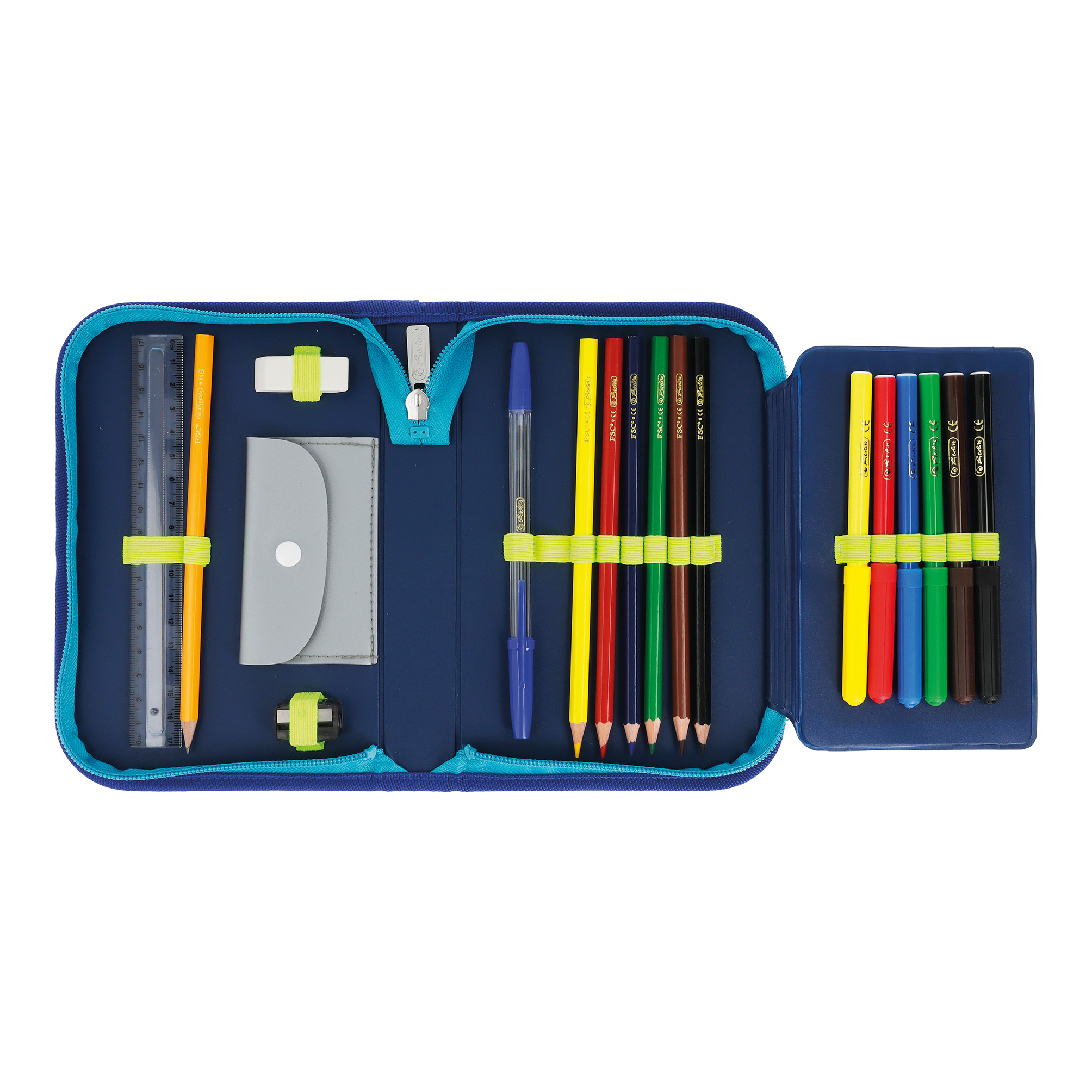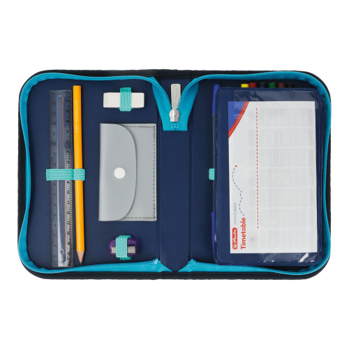 Pencil case Soccer, total open with content |