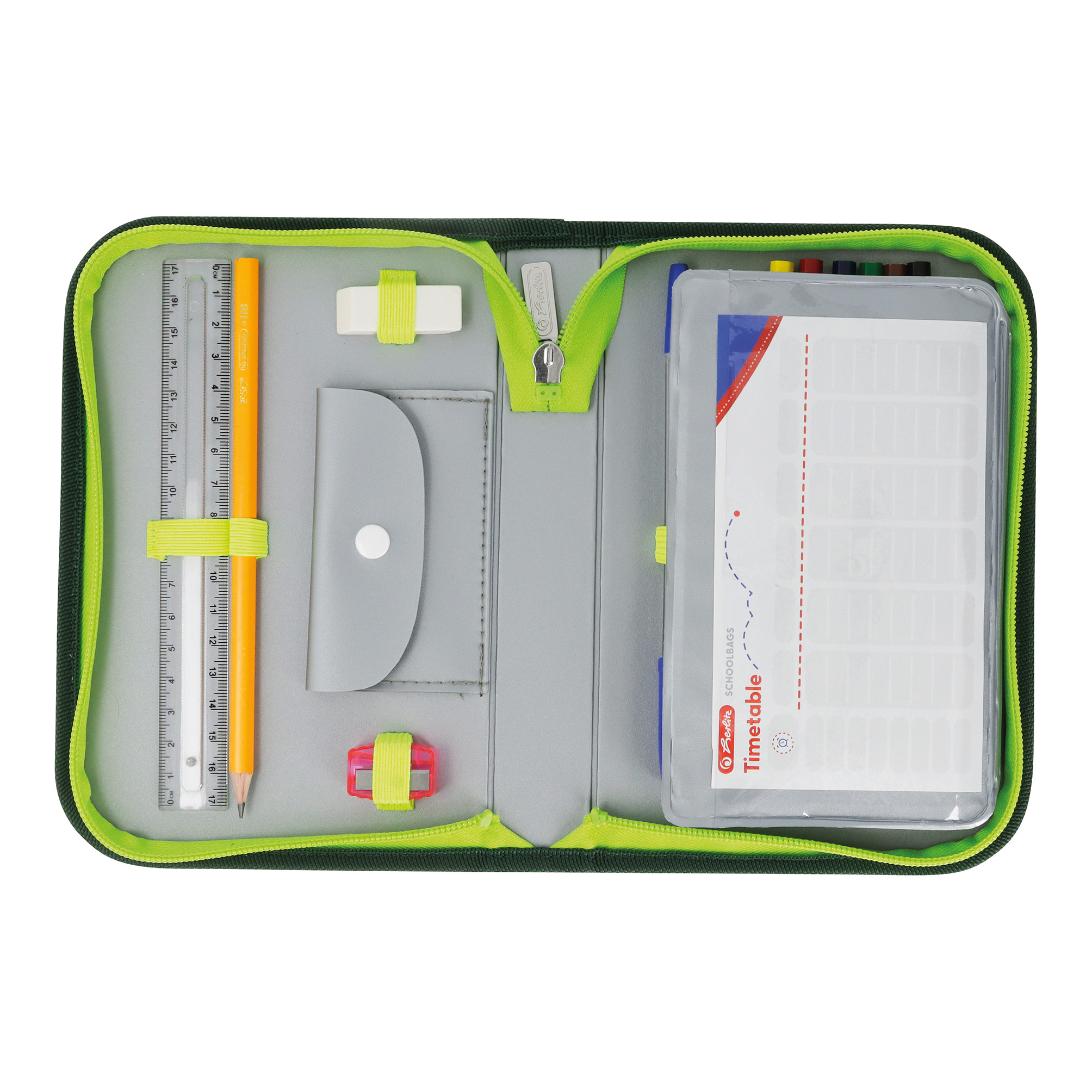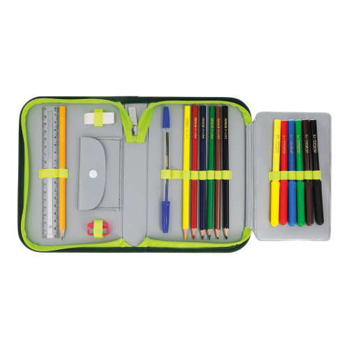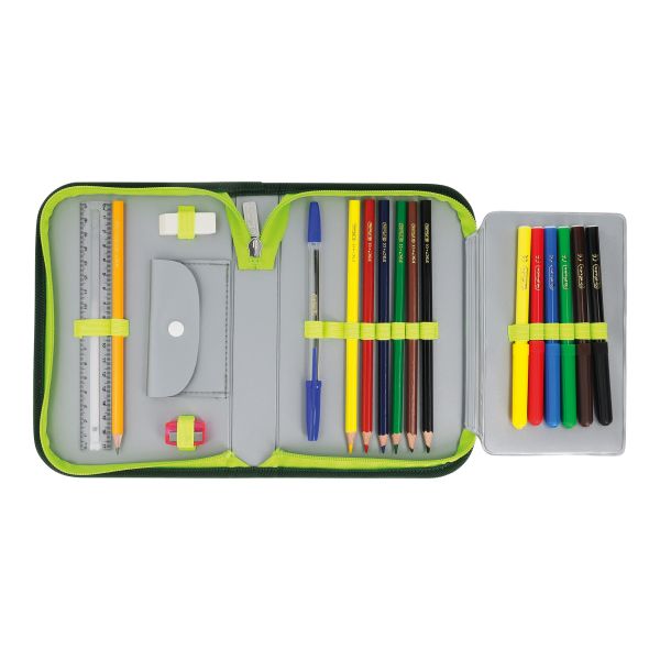 Pencil case Jungle, total open with content |