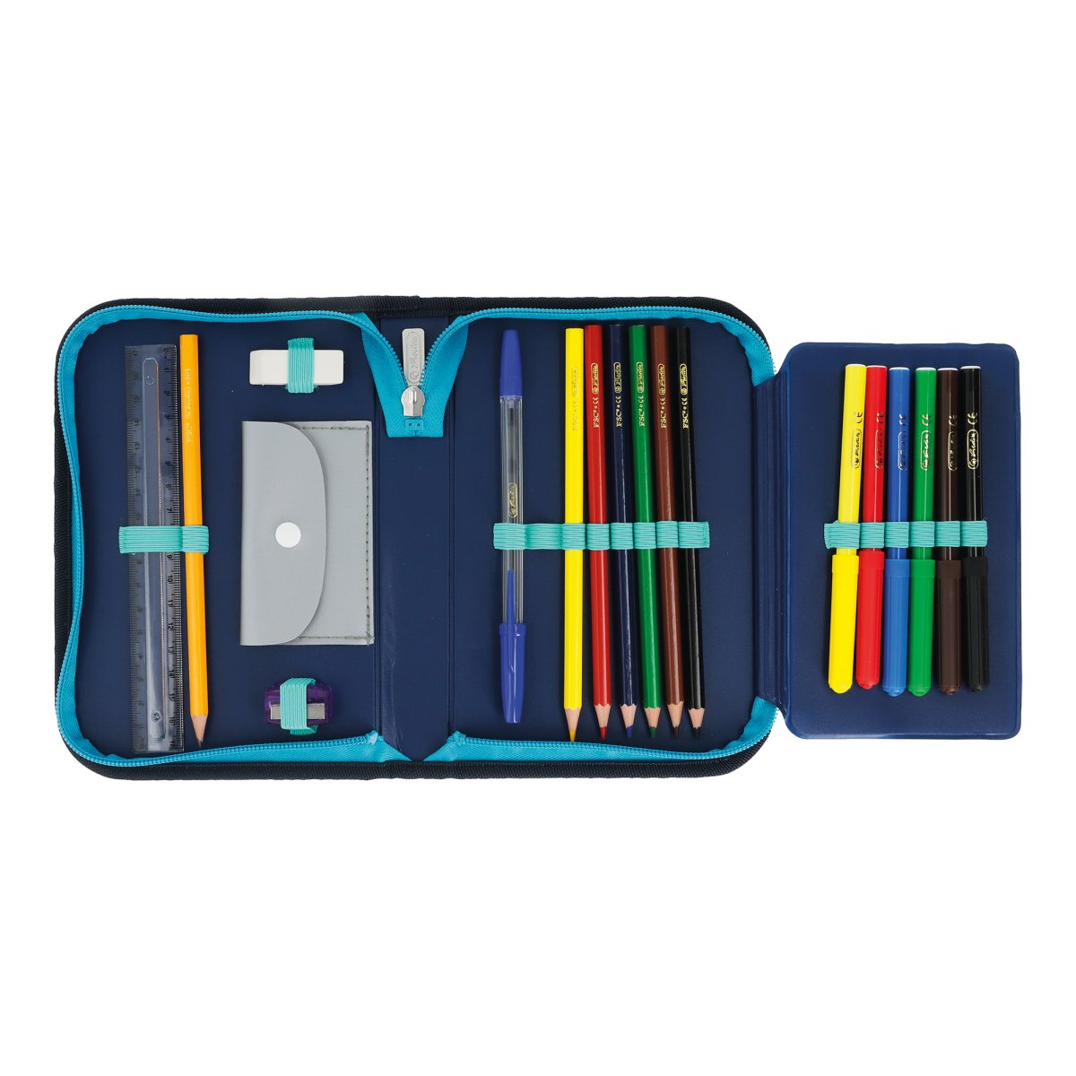 Pencil case Sea Bubbles, total open with content |