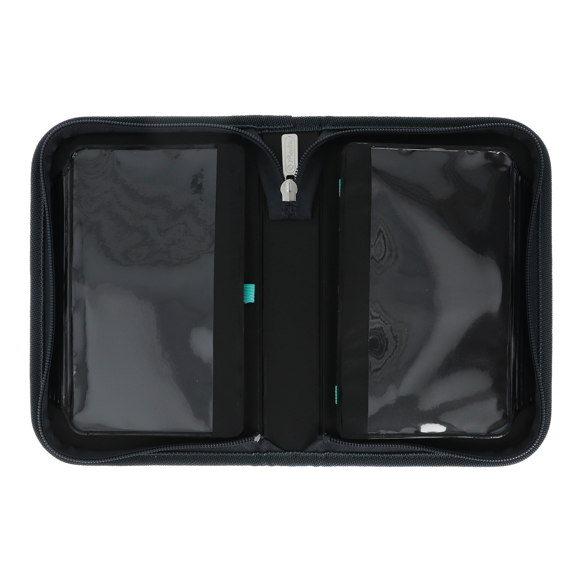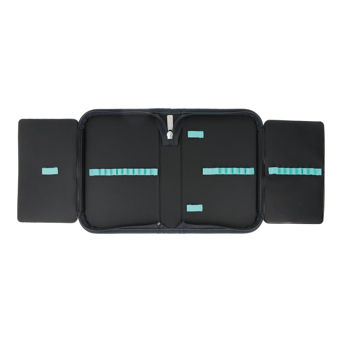 Pencil pouch round Mini Metallic Turquoise, topview |