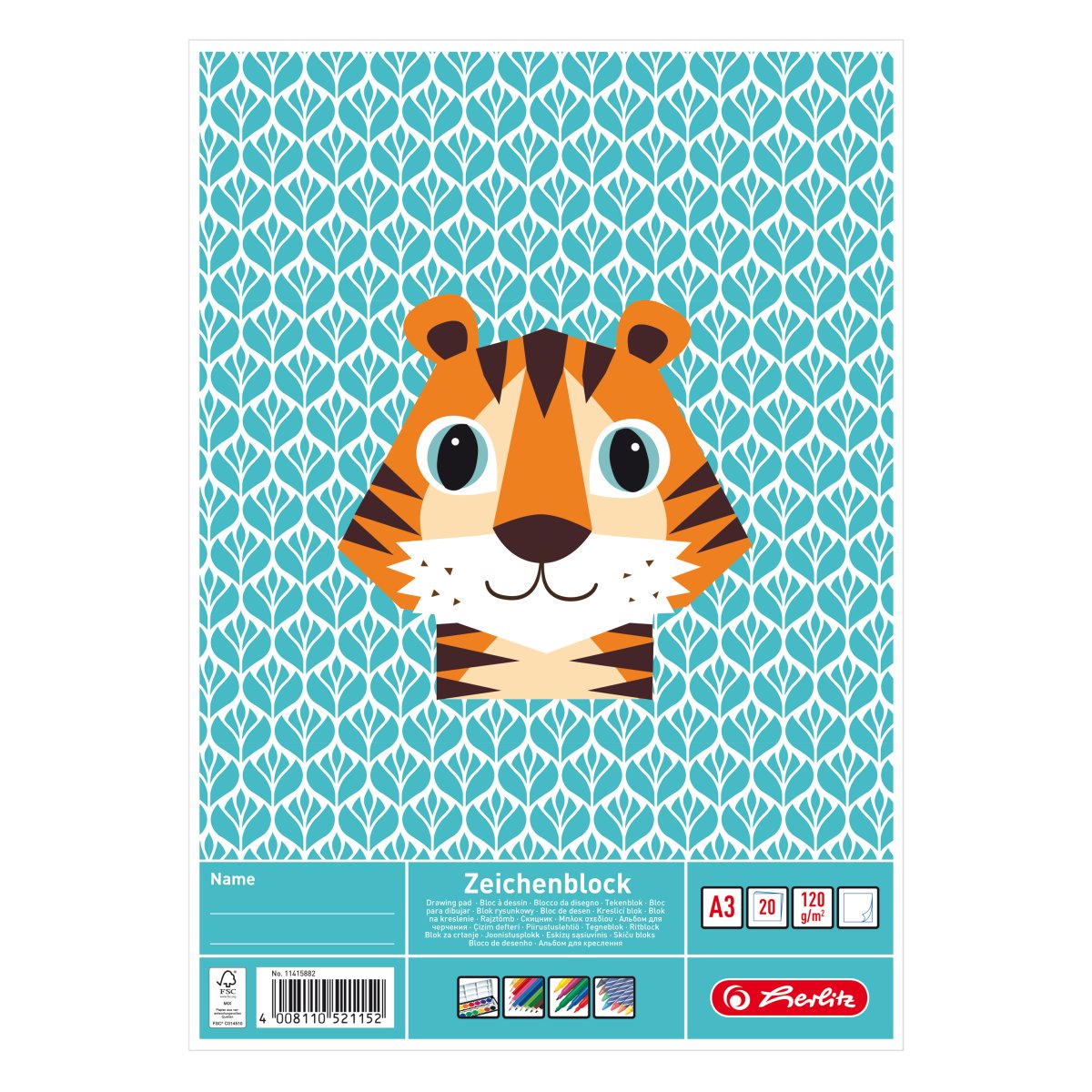 Drawing pad A3 20 sheets Cute Animals, Tiger |
