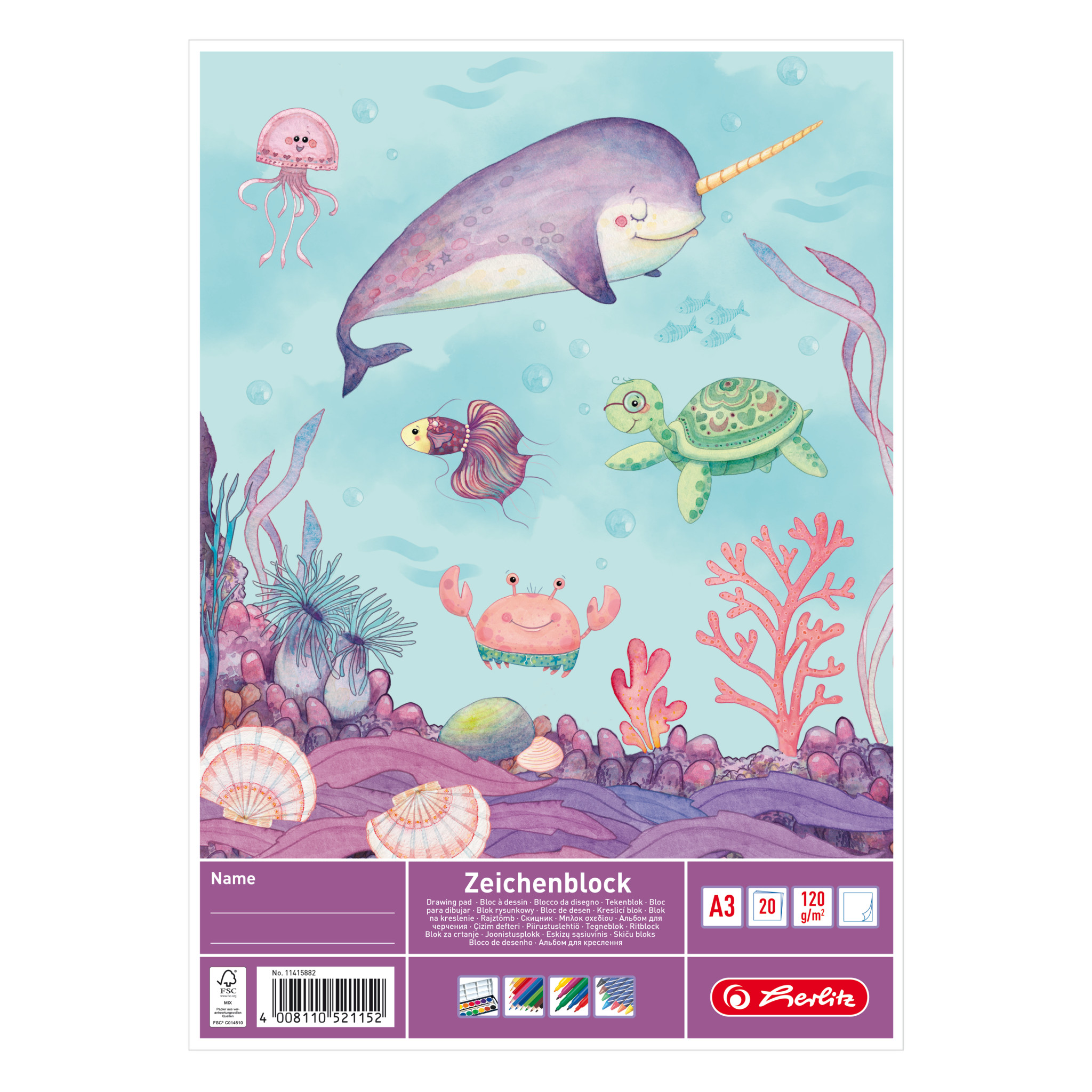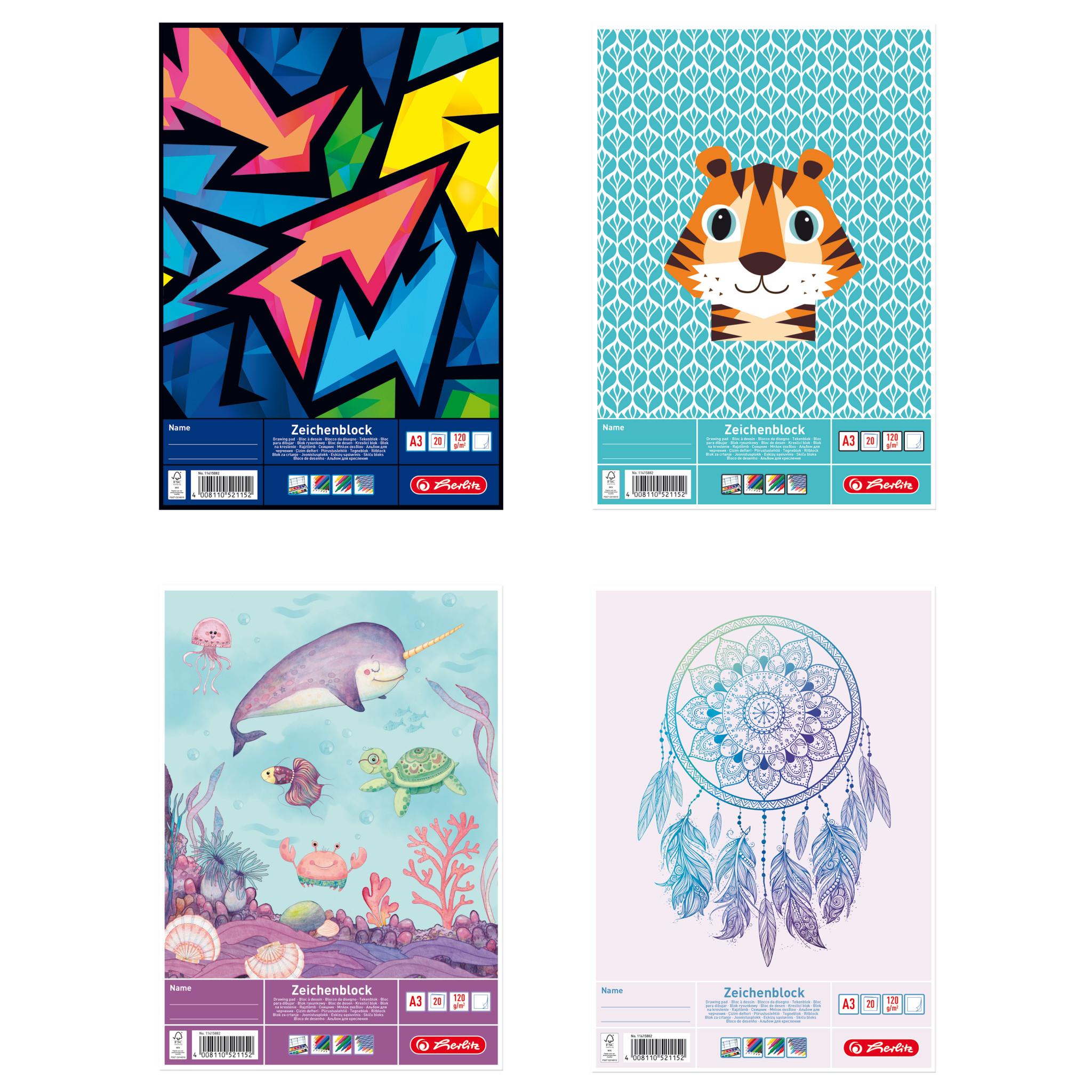 Drawing pad A3 20 sheets, 4 motifs |