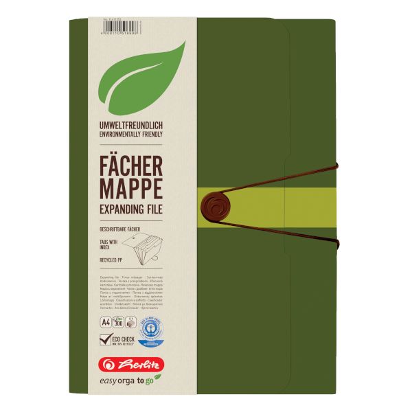 Fächermappe Recycling A4 easy orga to go green, dunkelgrün mit Banderole |