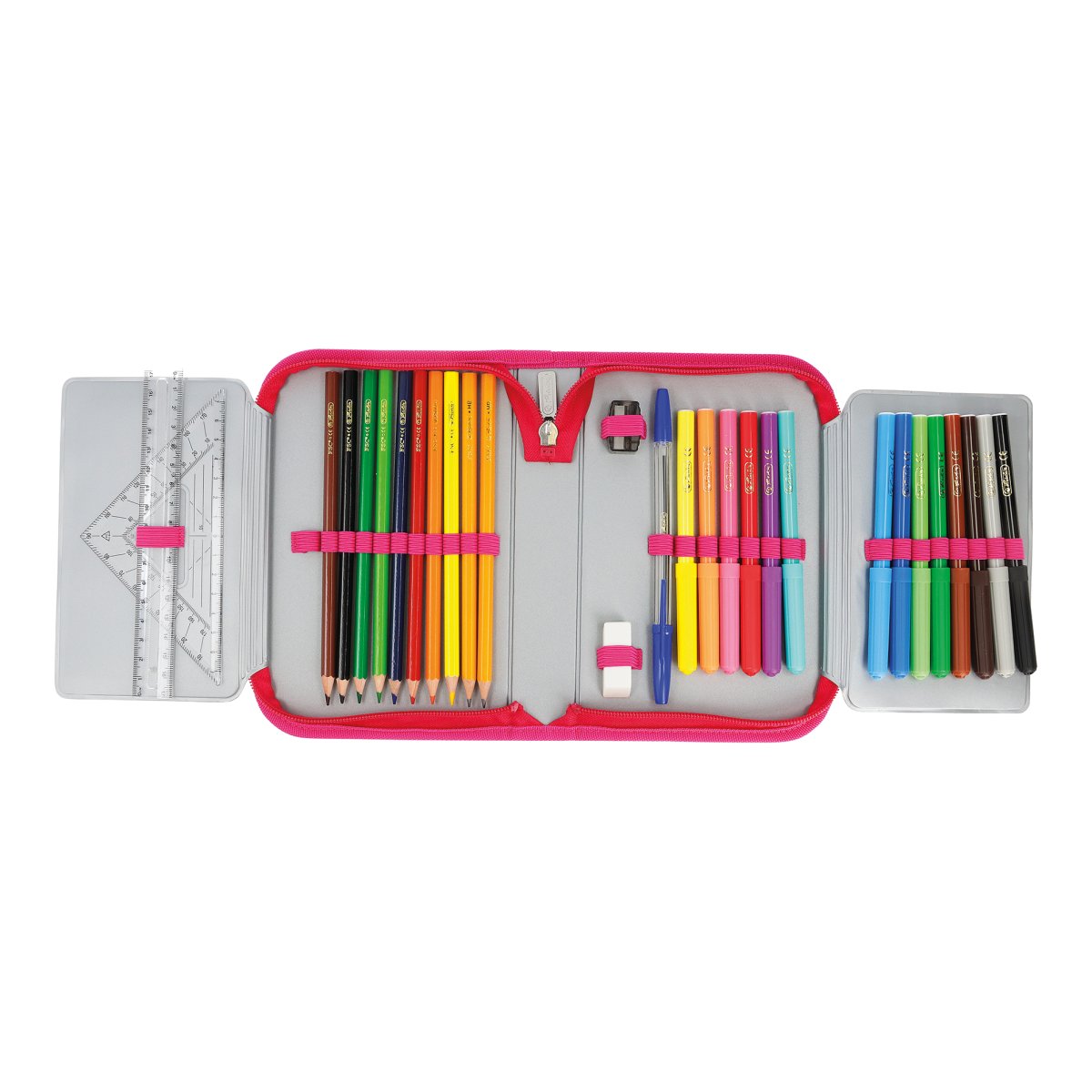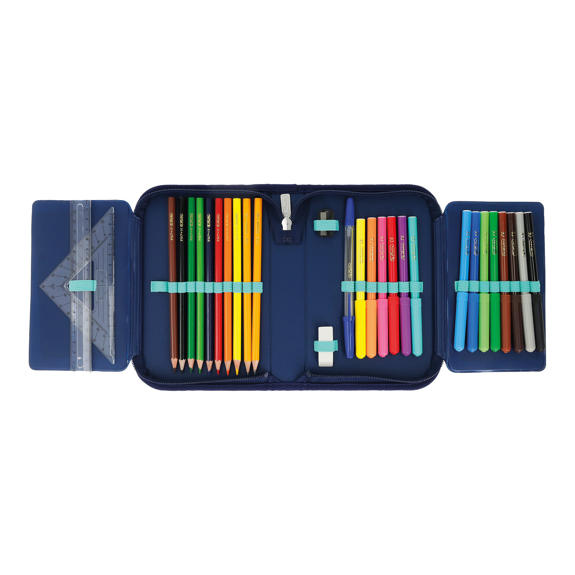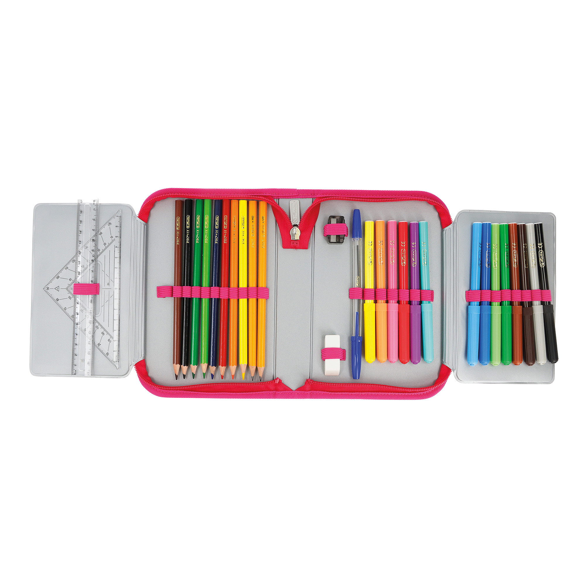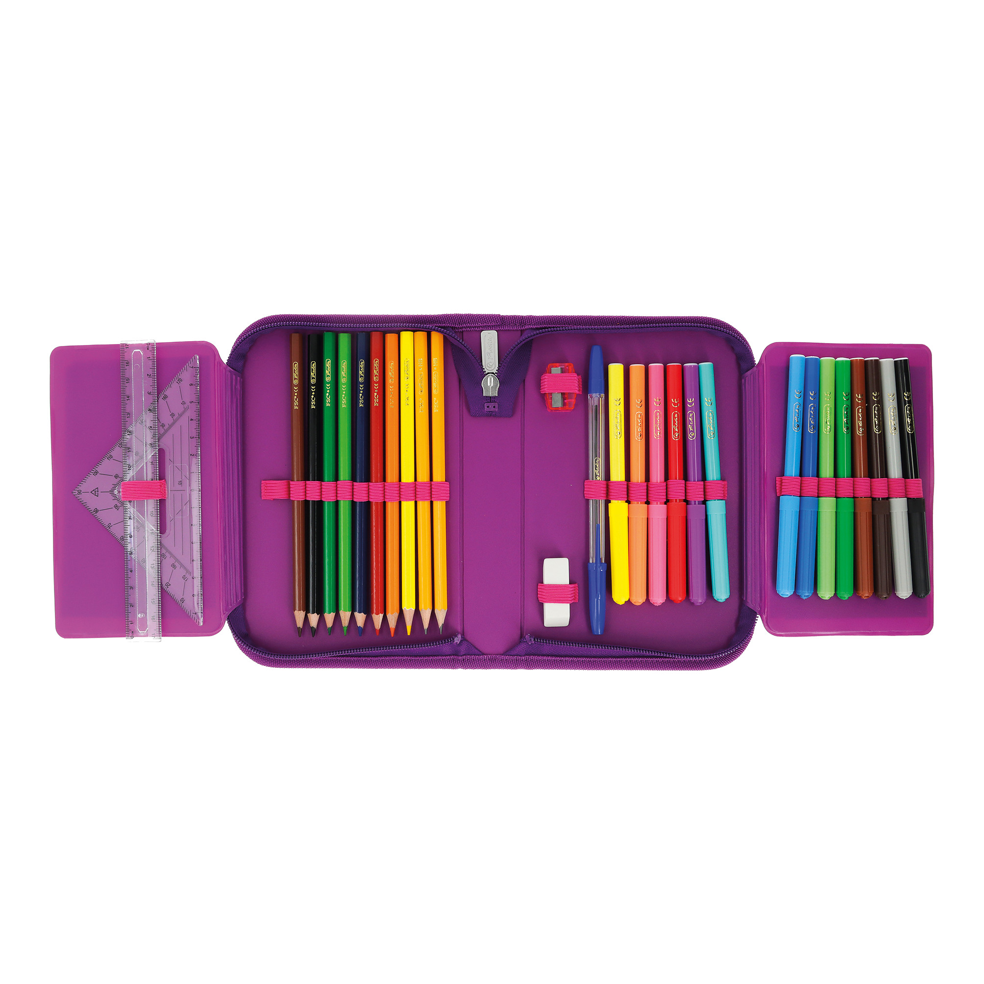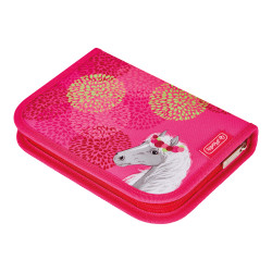 Pencil case Bloomy Horse, total open with content |