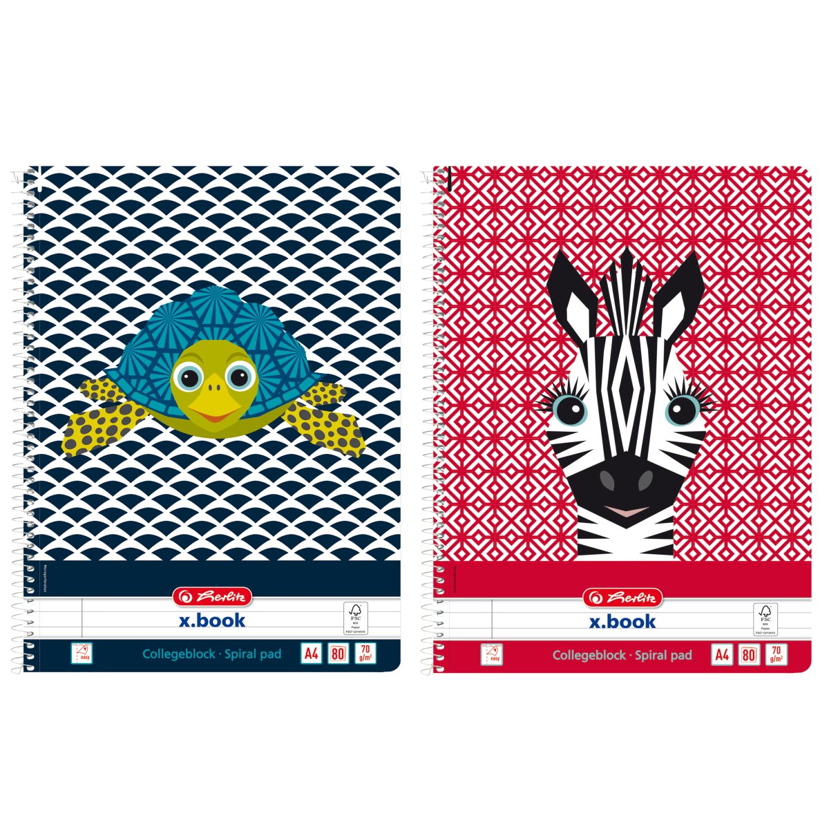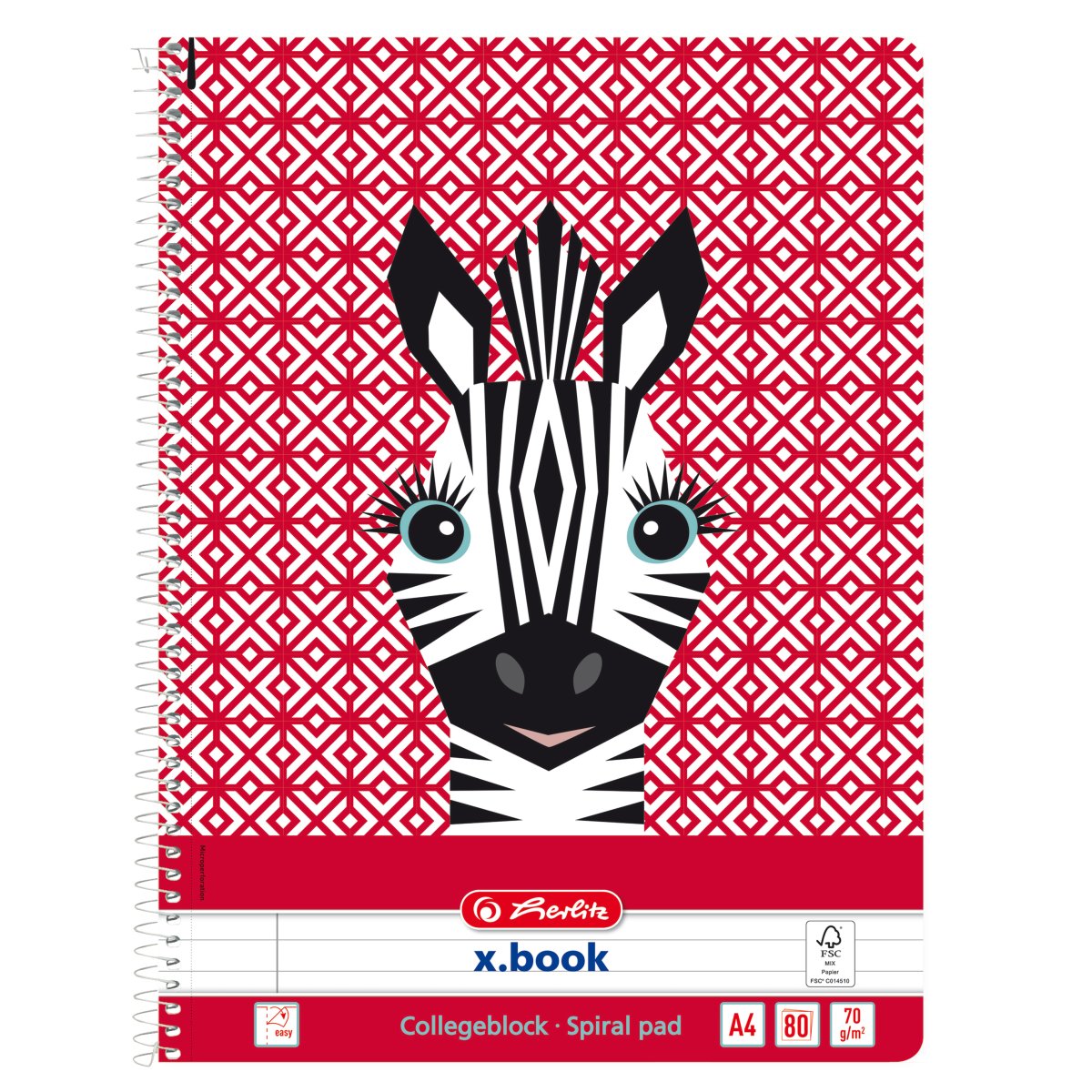 Spiral pad A4 x.book ruled with margin, Cute Animals Zebra |