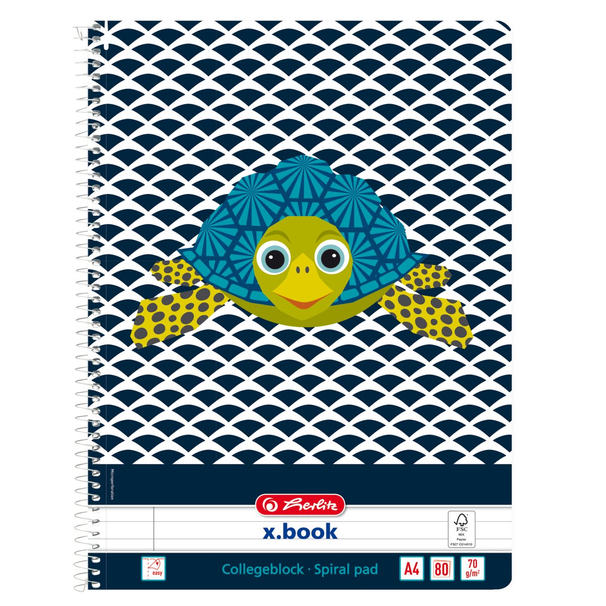 Spiral pad A4 x.book ruled with margin, Cute Animals Turtle |