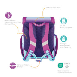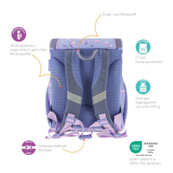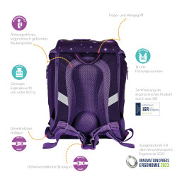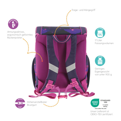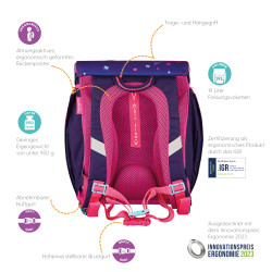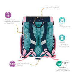 Primary school backpack SoftLight Space Girl backside, with Key Facts DE |