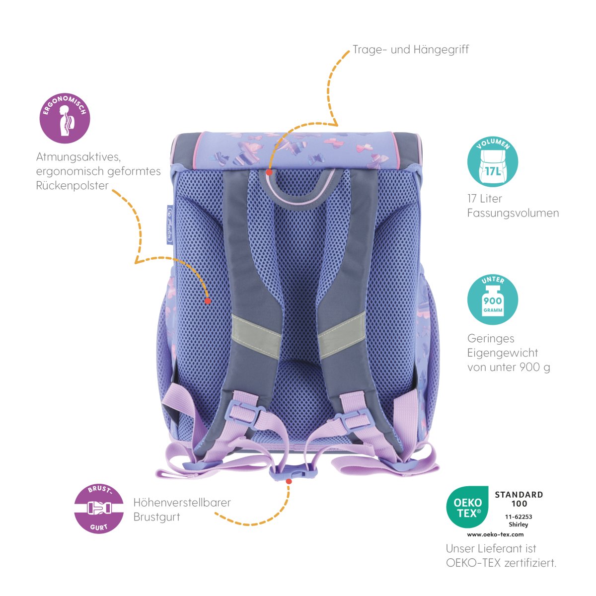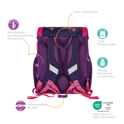 Schoolbag UltraLight Sweet Hearts backside, with Key Facts DE |