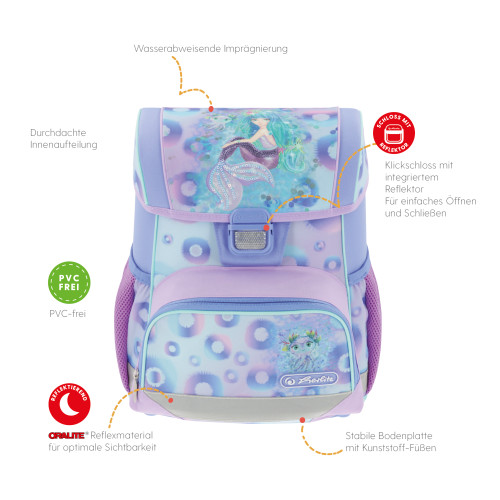 Primary school backpack SoftLight Space Girl front, with Key Facts DE |