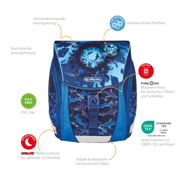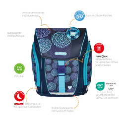 Primary school backpack SoftLight GREENline Deep Sea front, with Key Facts DE |