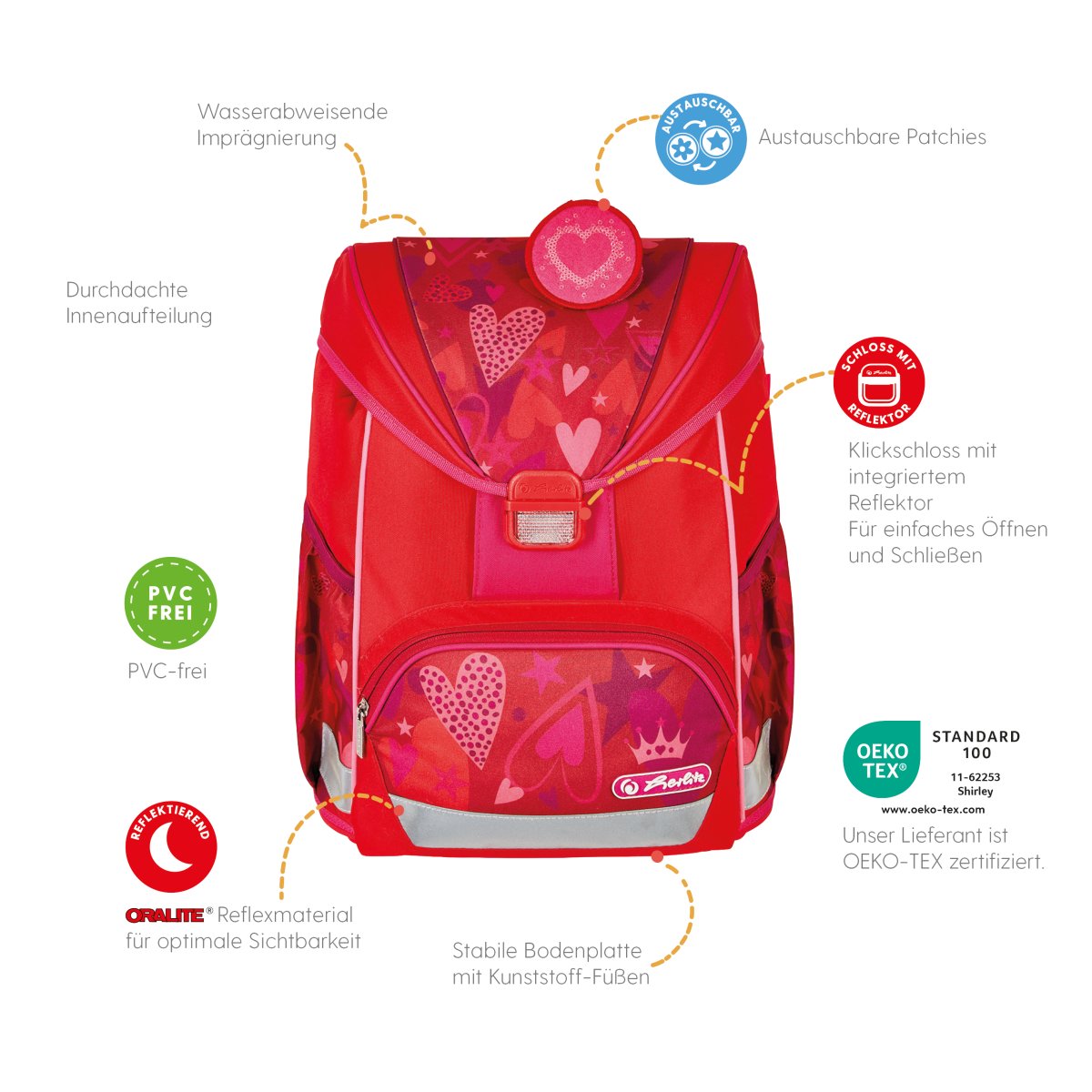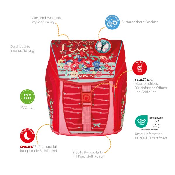 Schoolbag UltraLight Sweet Heartse front, with Key Facts DE |