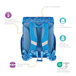 Primary school backpack SoftLight Sports backside, with Key Facts DE |