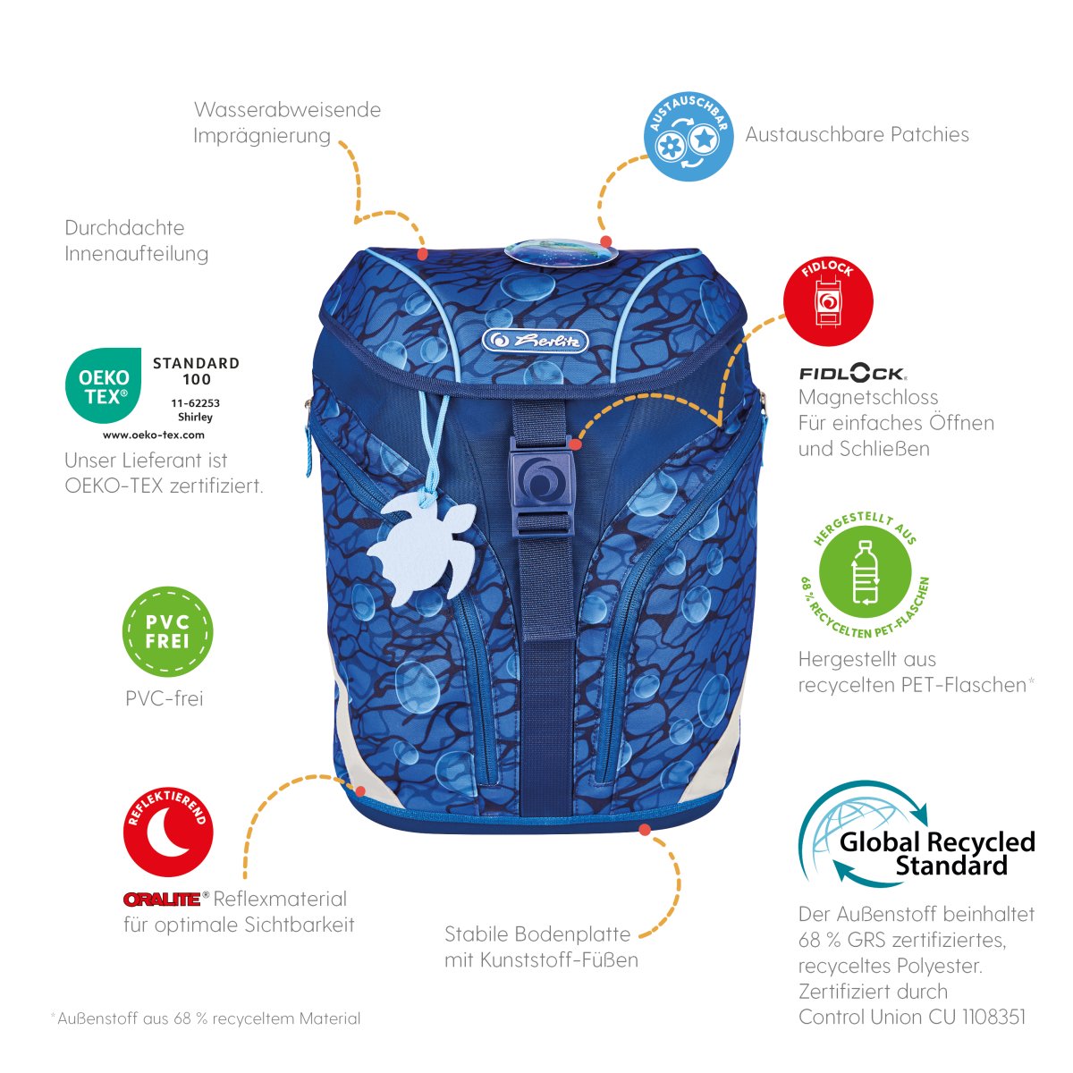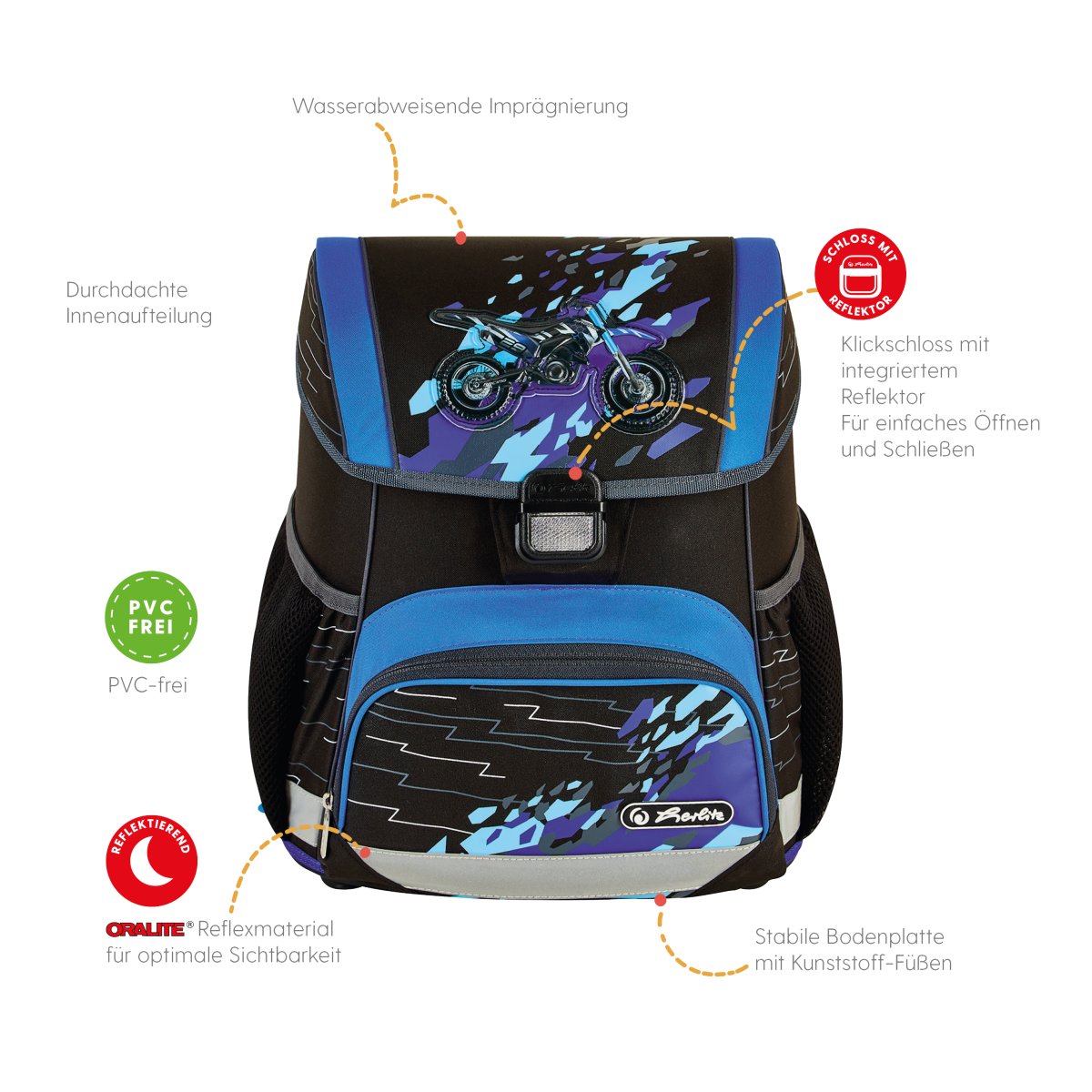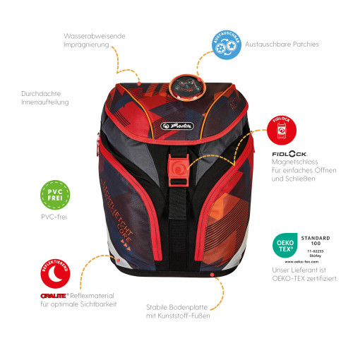Schoolbag UltraLight Mechanic front, with Key Facts DE |