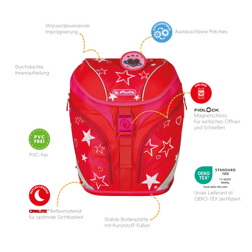 Primary school backpack SoftLight Stars & Stripes front, with Key Facts DE |