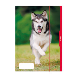 | glossy cardboard with 3 insertion flaps with elastic in red motif dog 1 piece |