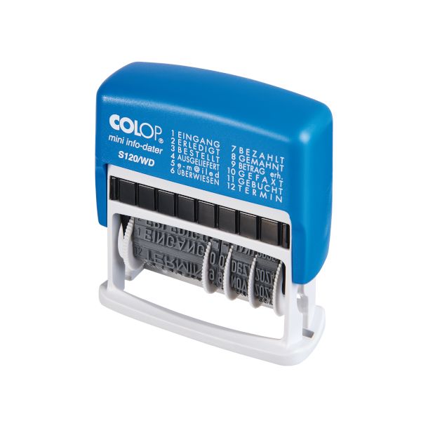stamp Colop Mini Dater S 120 WD self inking with 12 german office-texts | |