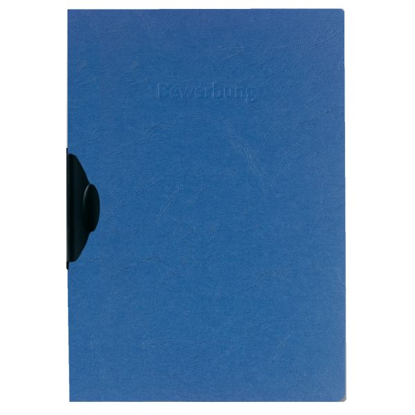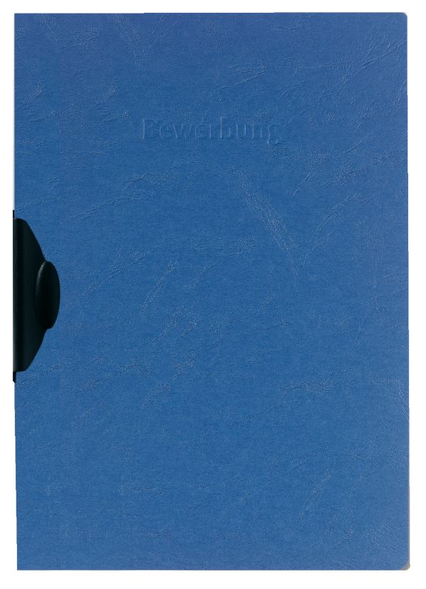 recycling-cardboard, leather emb. blind embossing "Bewerbung" filing for approx. 30 sheets with black swing-clip blue 1 piece |