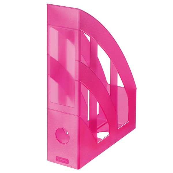 plastic classic design, round slot for easy handling, windows on both sides, labeling area backside raspberry translucent 1 piece |