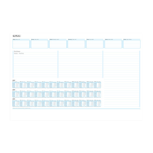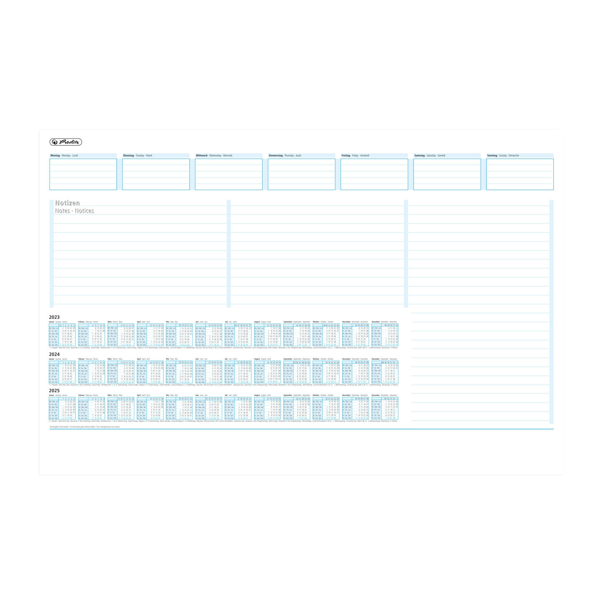 wood- and chlorinefree paper, 70g/m² 50 sheet 58 x 38 cm 2 color printed with calendar 23/24/25 and weekly planner, with protection flap white, print black and blue 1 piece in polybag |