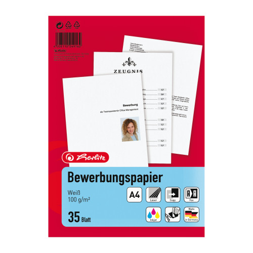 woodfree paper, 100gsm for inkjet/laser/matrix/copy/fax resealable foil wrapping white 35 sheets, shrink-wrapped |