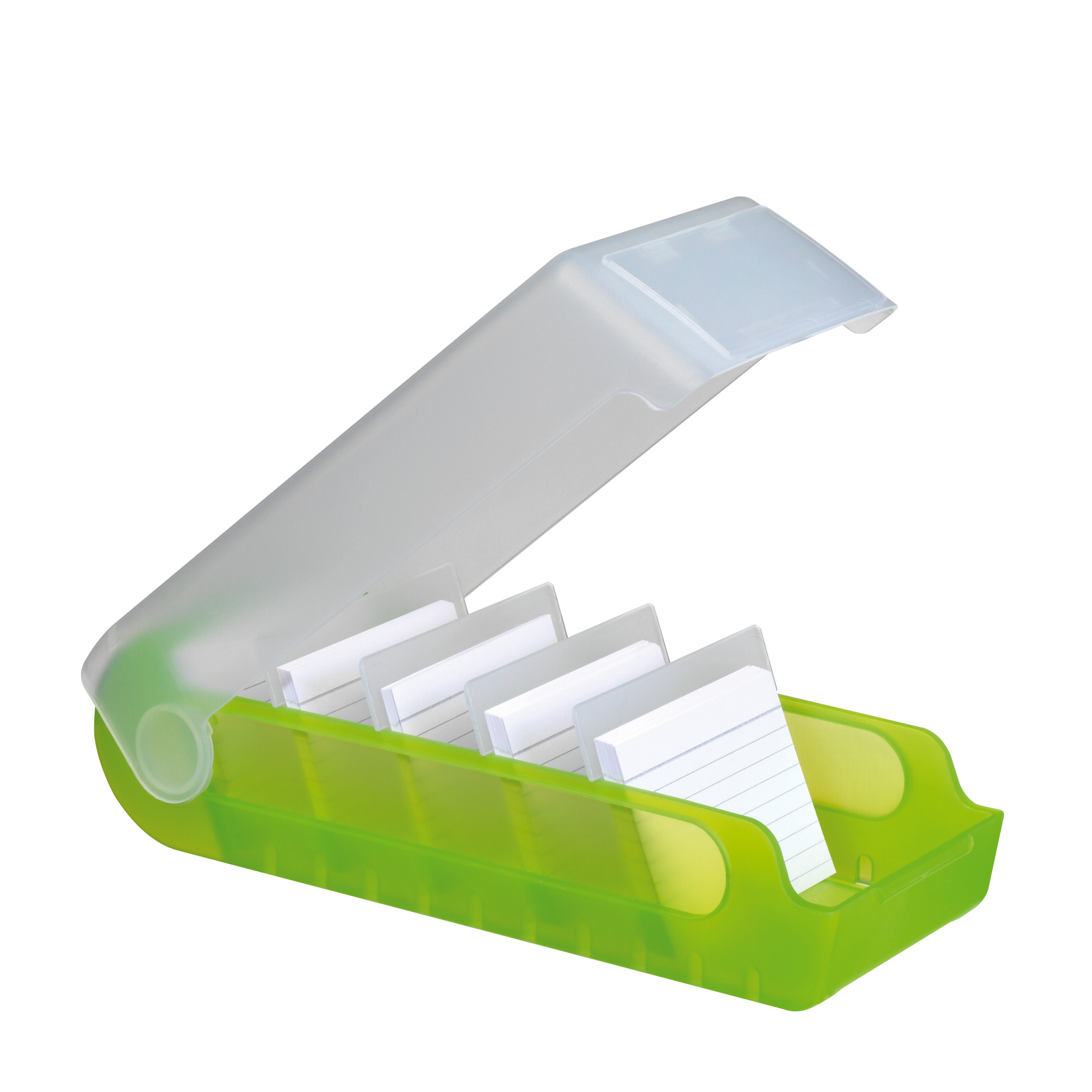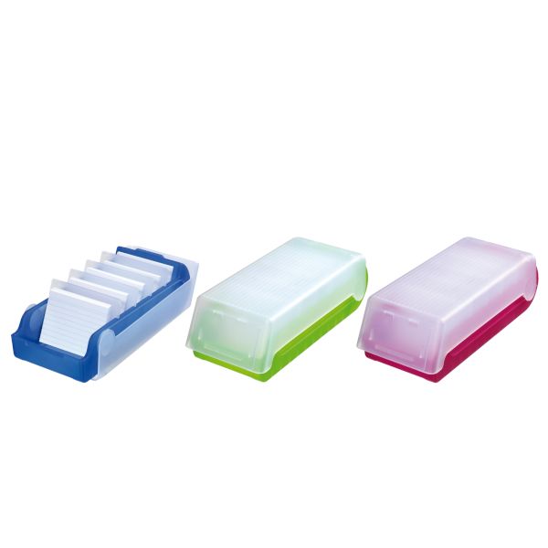 plastic/paper 100 index cards A8 with 4 dividers, suitable for learning with the 5-case learning system for up to 600 index cards translucent assorted colours 1 piece in cardboard slipcase |