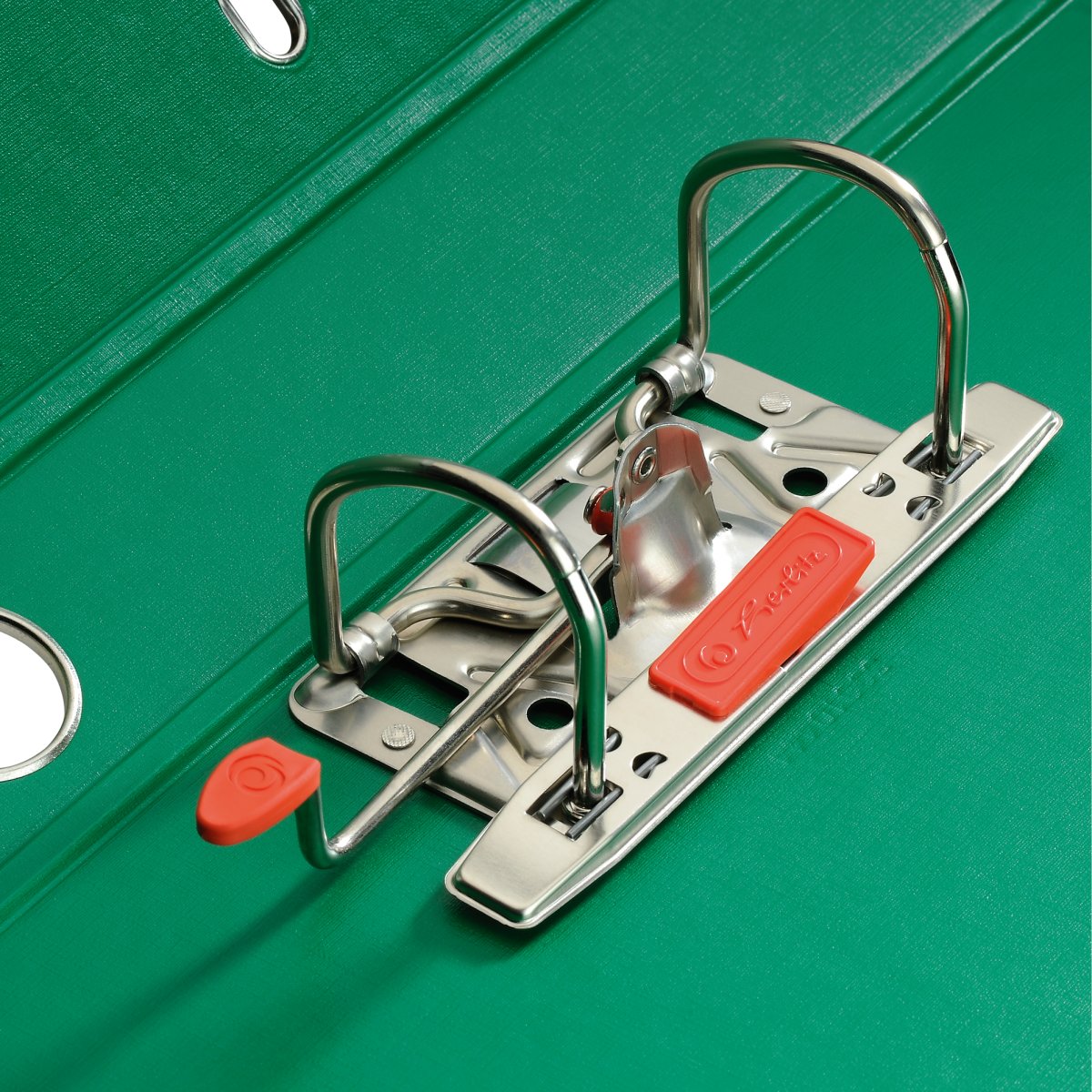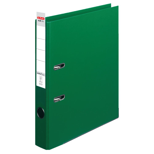 | PP laminated cover,inside & outside protective metal rims, stable reversible spine label logo-embossing below finger hole FSC Mix green 1 piece |