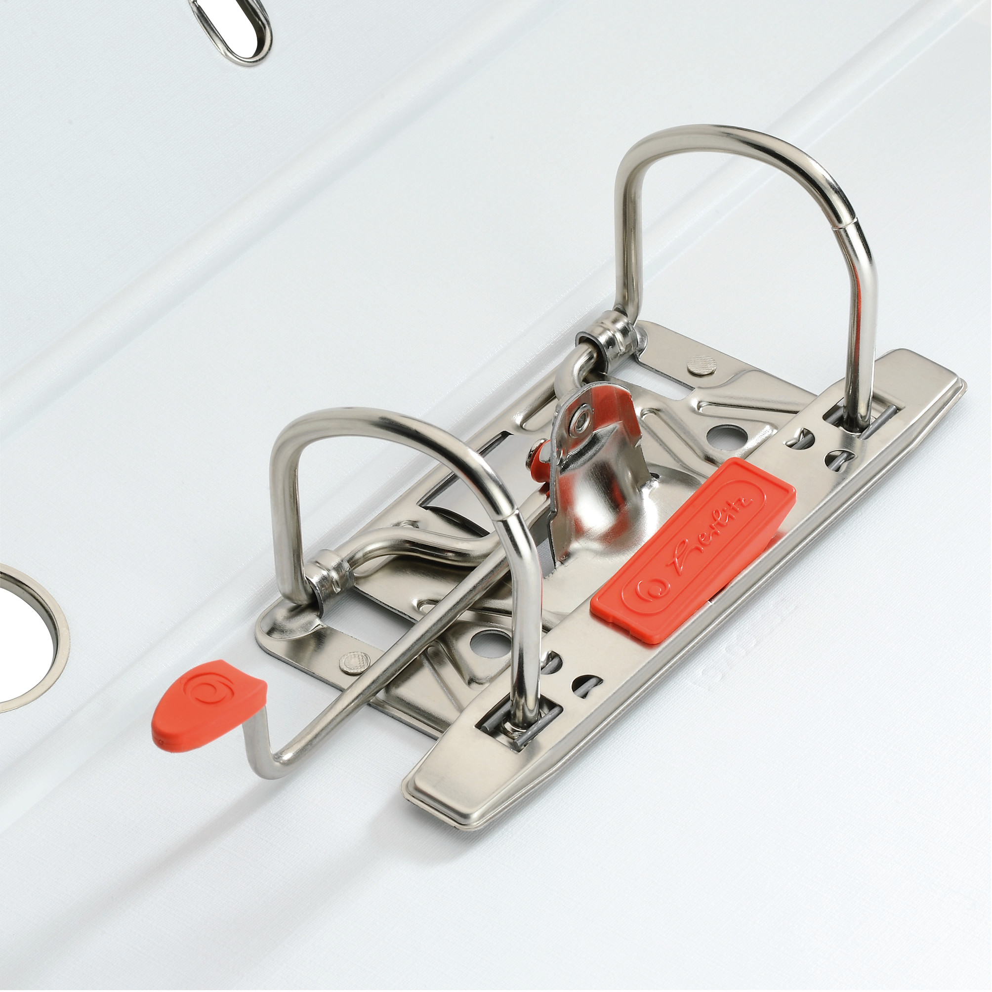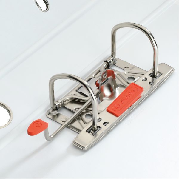 | PP laminated cover,inside & outside protective metal rims, stable reversible spine label logo-embossing below finger hole FSC Mix white 1 piece |