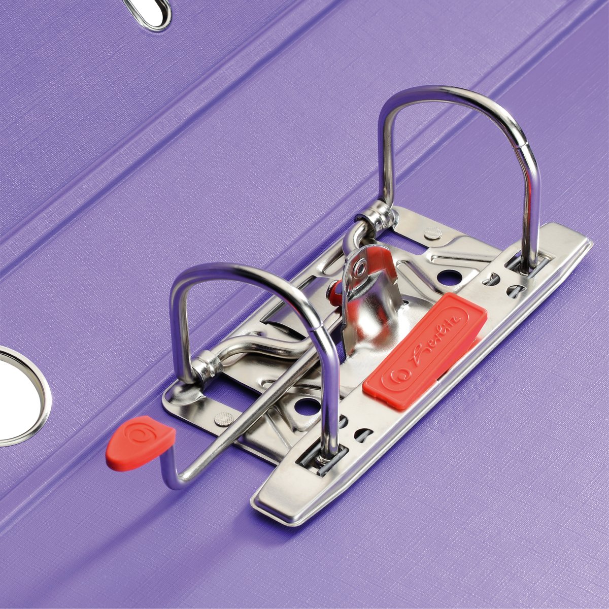 | PP laminated cover,inside & outside protective metal rims, stable reversible spine label logo-embossing below finger hole FSC Mix violet 1 piece  |